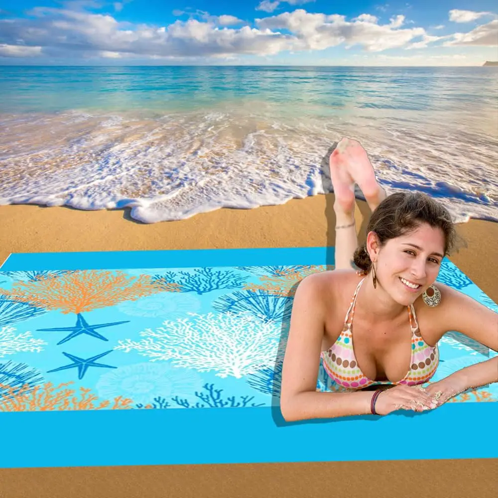 Beach Blanket Super Large 79 x 83 Inch Sandproof Waterproof Soft Comfortable Material Light Weight Portable for Beach Outdoor