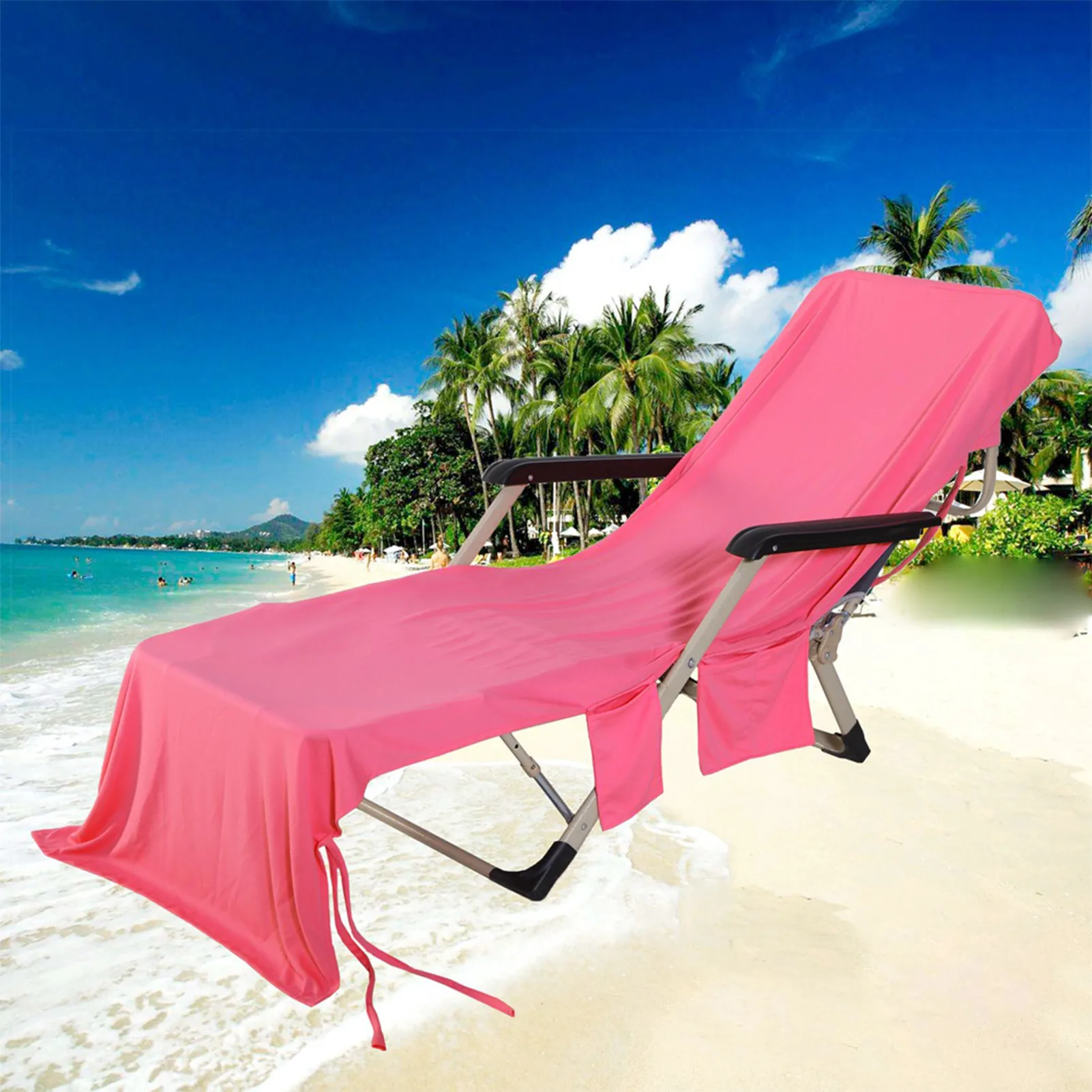 Beach Chair Cover With Side Pockets Microfiber Pool Lounge Chair Cover Quick Dry Beach Towel For Sun Lounger Pool Sunbathing