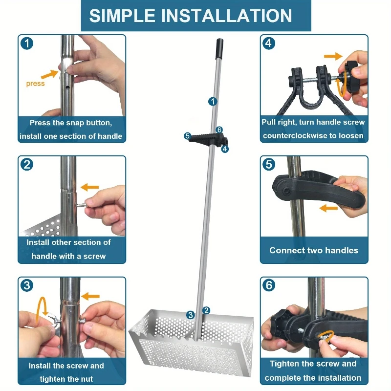 Comfortable and Secure Grip: The sand flea rake is equipped with a rubber non-slip handle and an auxiliary handle, providing a comfortable and secure grip. The uniform weight distribution prevents hand fatigue, enabling extended use without worrying about slipping off or drifting away.