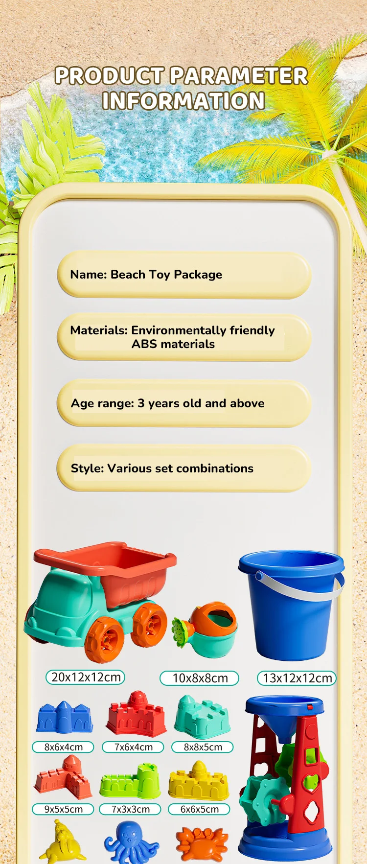3.Create great memories as your child explores nature and engages in imaginative play with this set of beach sand toy tool set.