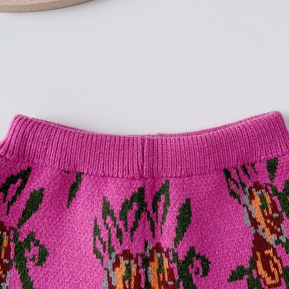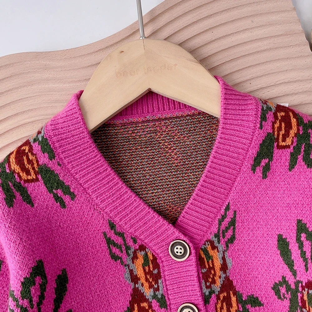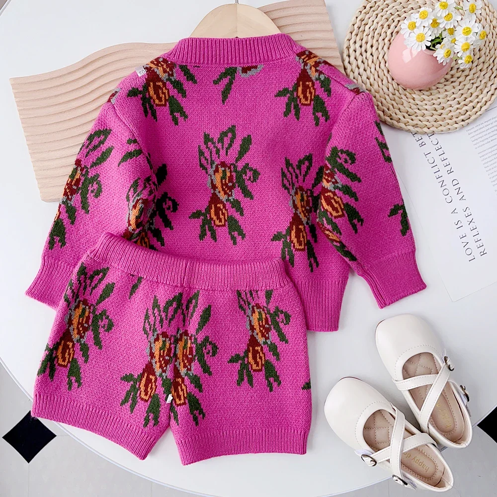 Bear Leader 2023 Winter Fashion Baby Girls Long Sleeve Floral Print V-neck Knitted Top + Floral Print Shorts Girls Sweater Sets