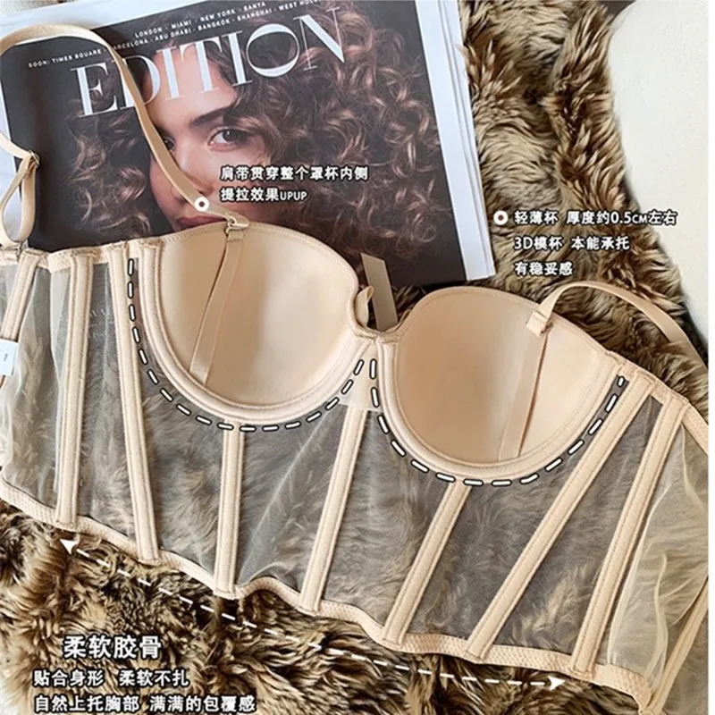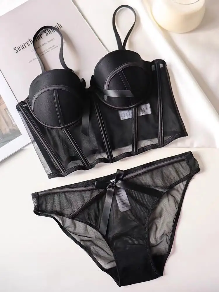 Beautiful Women Sexy Mesh Push up Corset Underwear Lady Transparent Soft Lace Bra Set Sweet Cropped Top Girls Bra and Panties