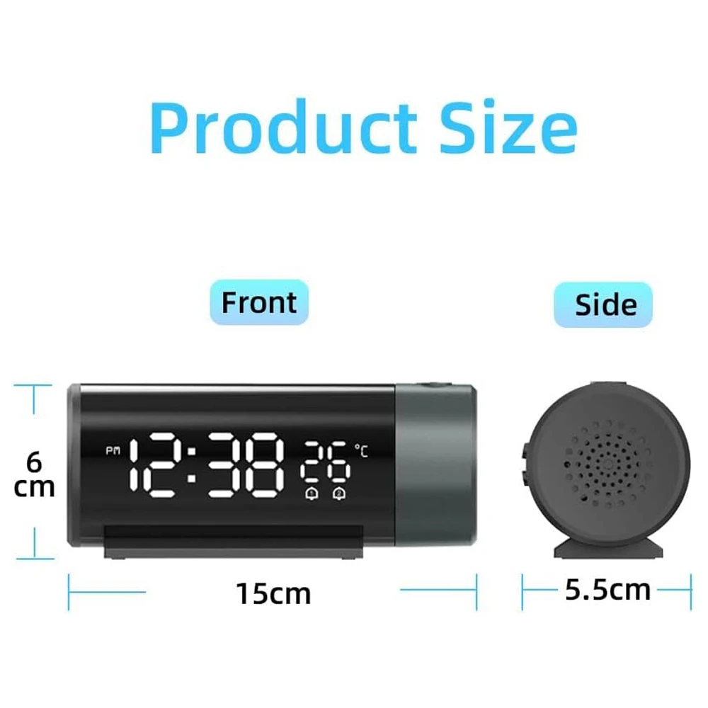 Bedroom Projection Digital Clock with 180 Rotating Projector, Automatic Brightness Adjuster, Indoor Thermometer Clock with USB
