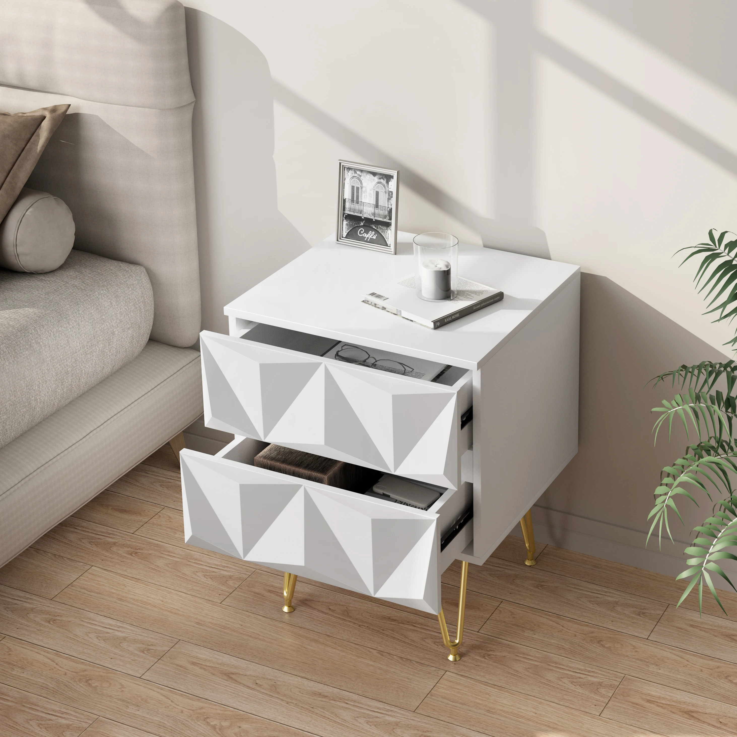Bedside Table 40x53x40cm Decorative Adult Nightstand Modern Storage Unit with 2 Drawers 3D Effect for Bed Bedroom Living Room