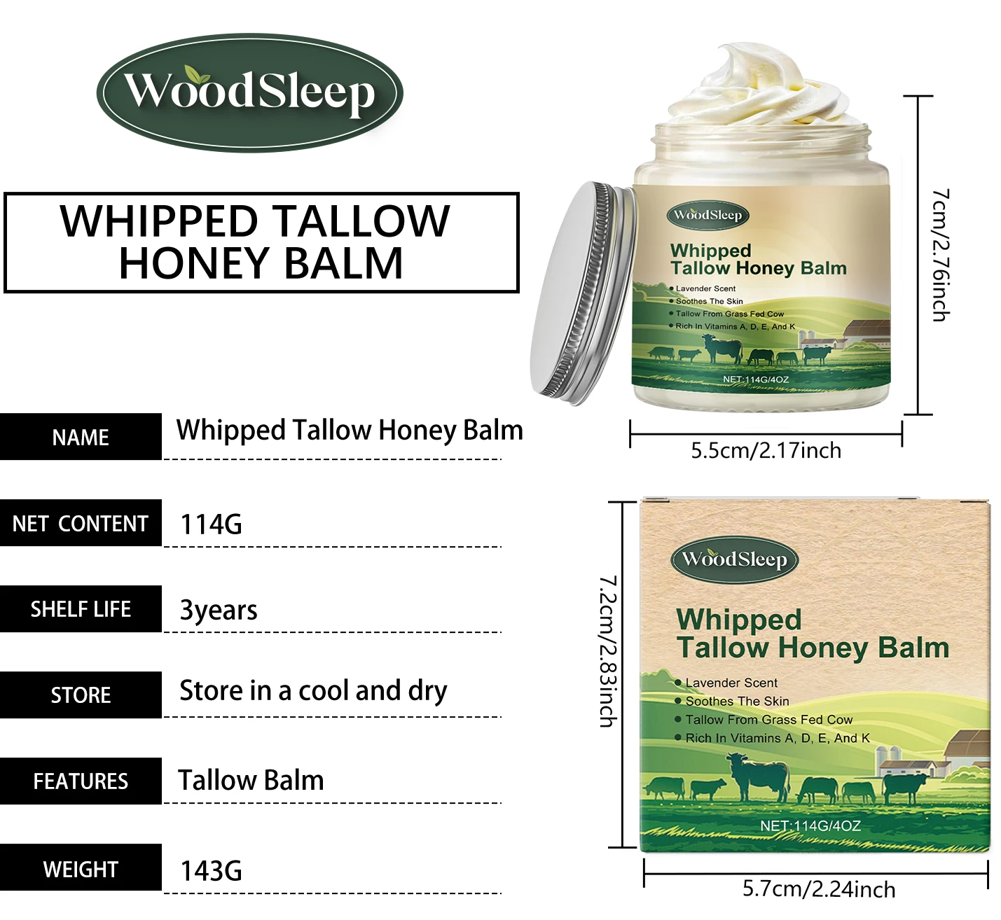 Item Type: WOODSLEEP Whipped Tallow Honey Balm
