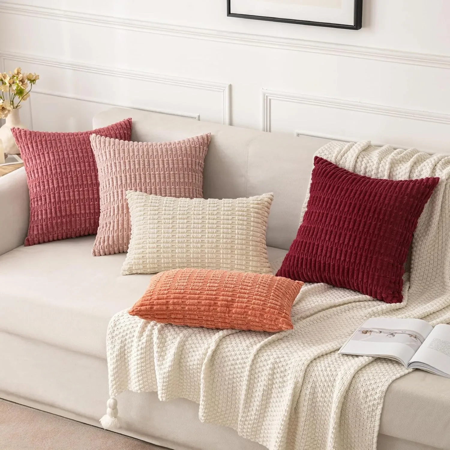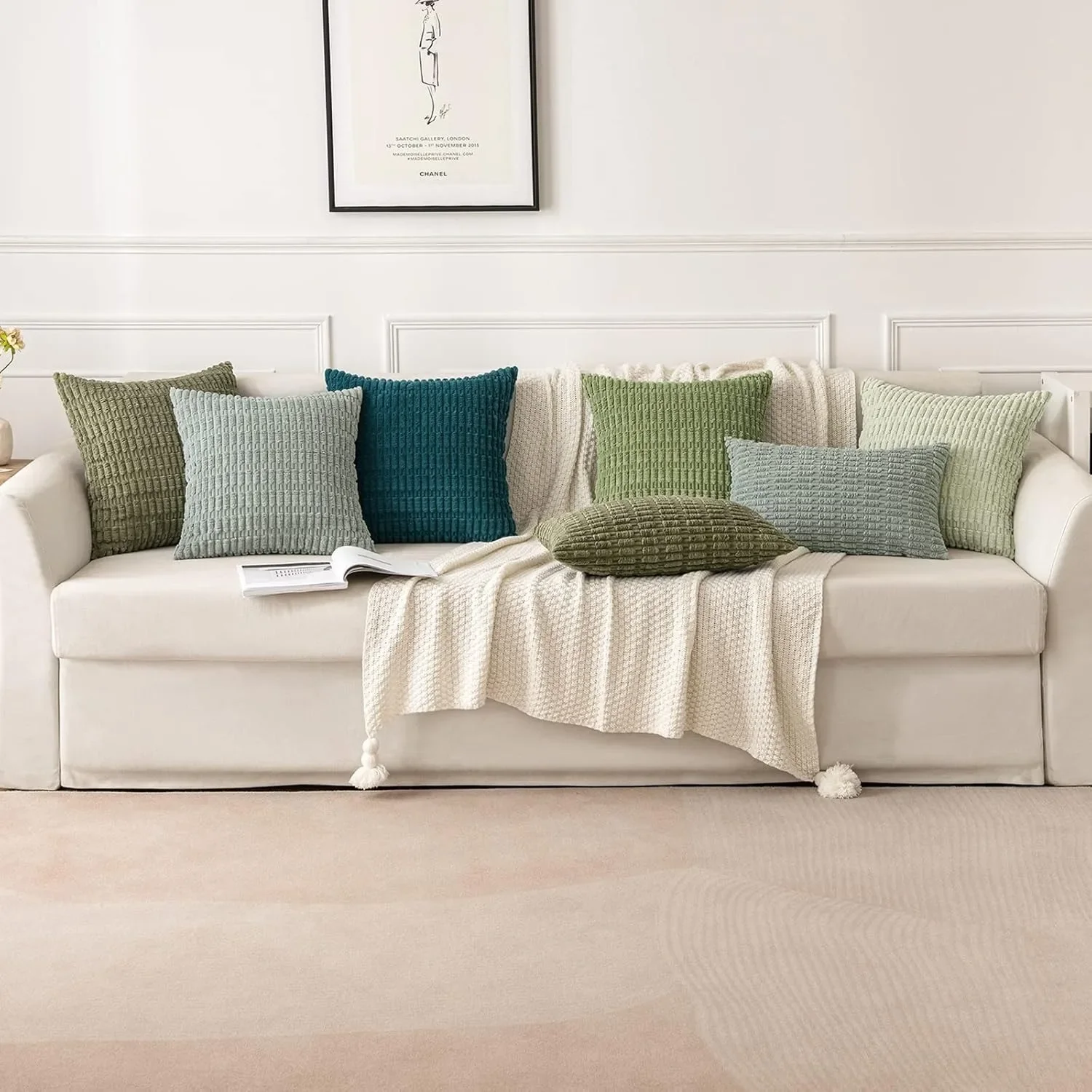 Beige Pillow Covers 18 X 18 Inch White Super Soft Corduroy Decorative Throw Pillows Couch Home Decor for Cushion Sofa Bedroom
