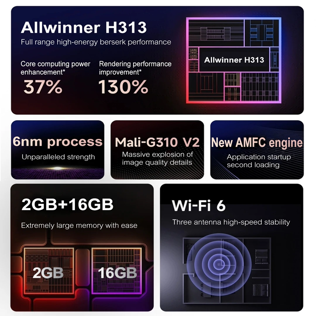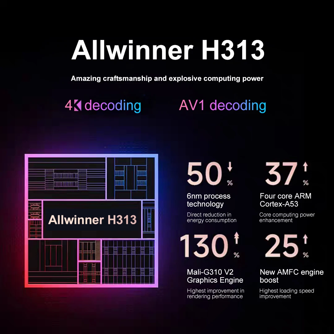 - CPU: Allwinner H313 Quad Core