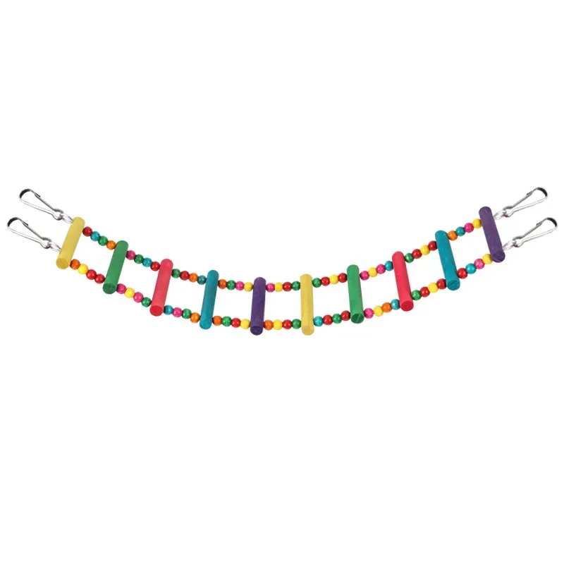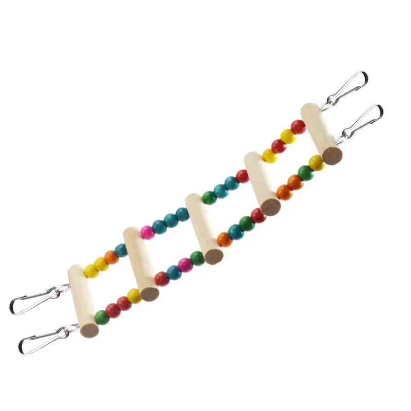 Birds Pets Parrots Ladders Climbing Toy Hanging Colorful Balls with Natural Wood Ladders Parrots Climb Ladders Swing Toys