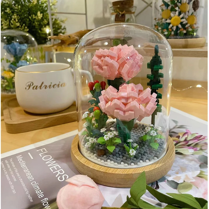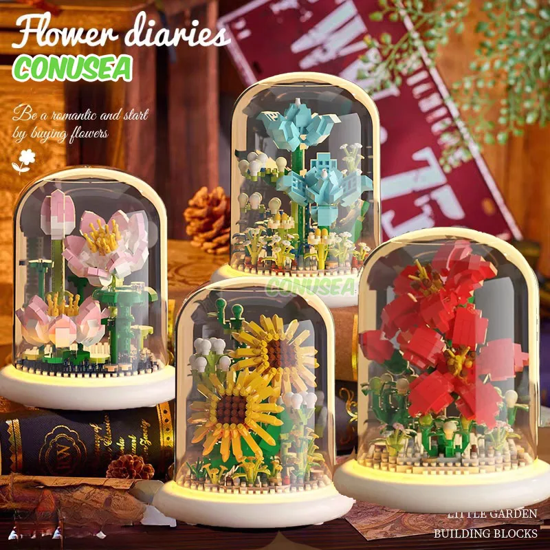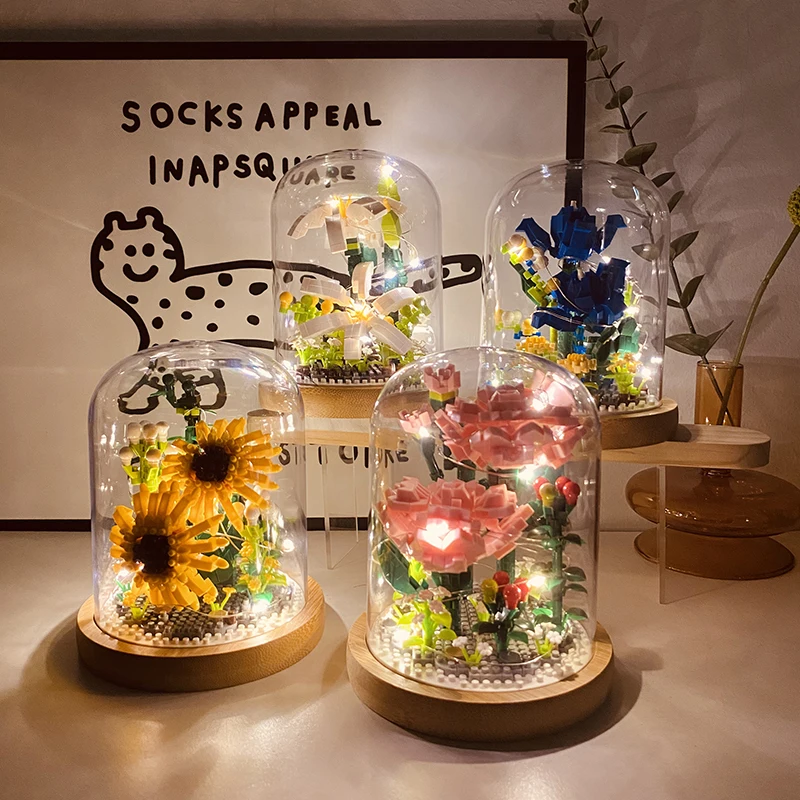 Birthday Day Gifts LED Building Blocks Eternal Flowers Bouquet Mini Block Flower Brick Birthday Gifts for girls girlfriend