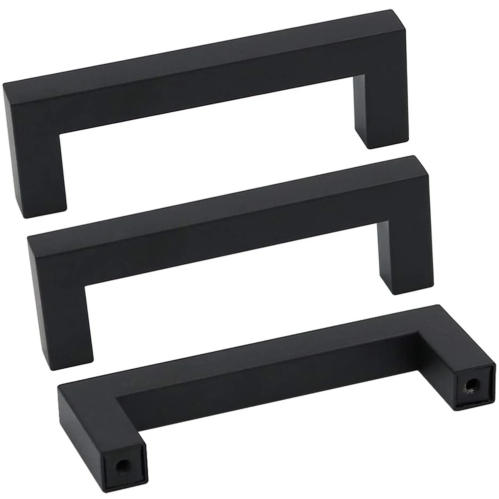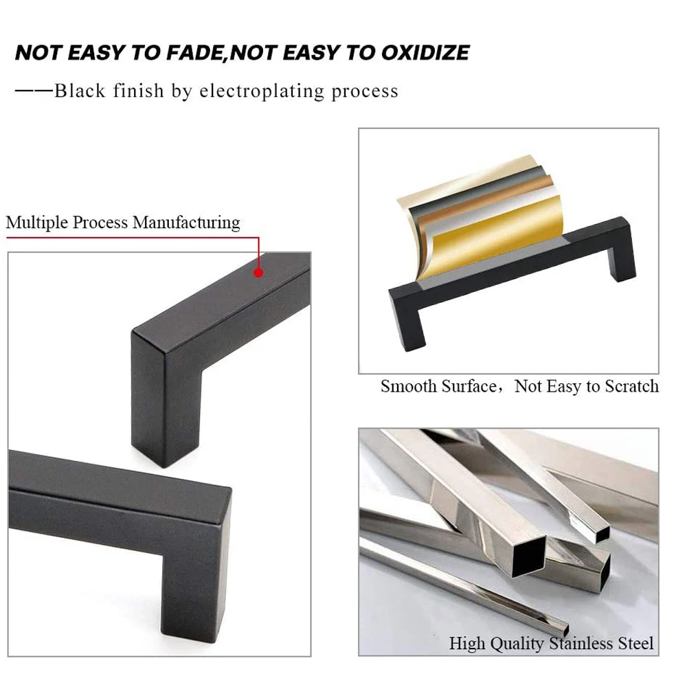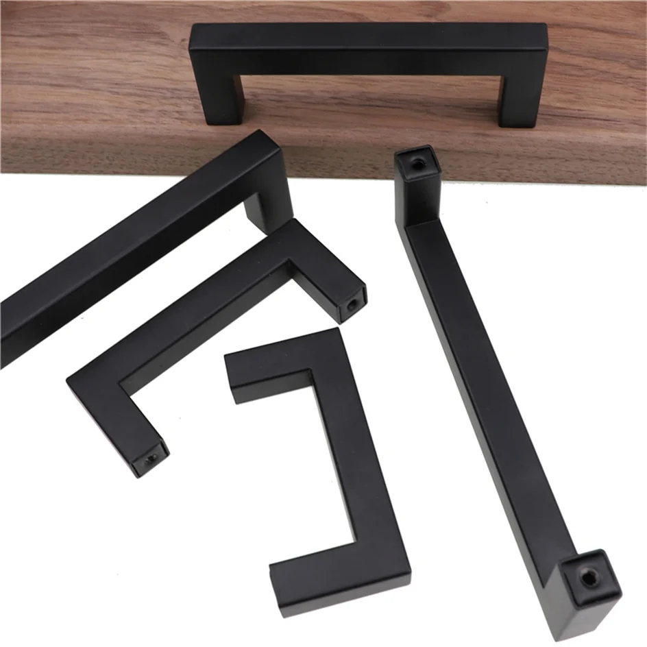 Black Cabinet Pulls Square Bar Kitchen Cupboard Drawer Handle Stainless Steel Modern Furniture Door Hardware Wardrobe Knobs