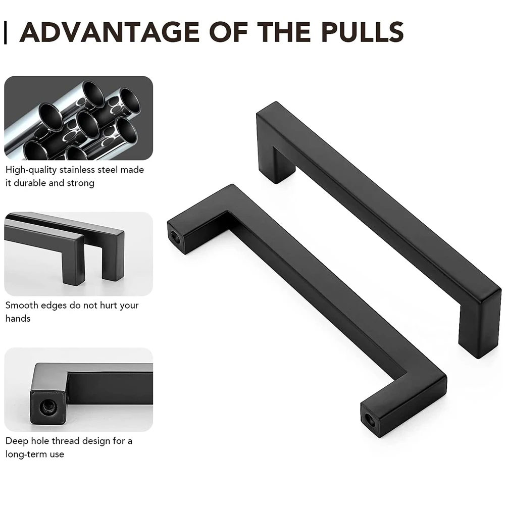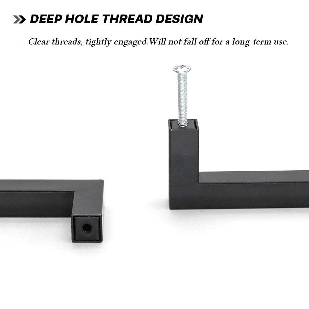 【strong and sturdy】These black cabinet pulls are made of high-quality, strong, and durable stainless steel. The deep threaded design makes the handle difficult to loosen and therefore fall off.