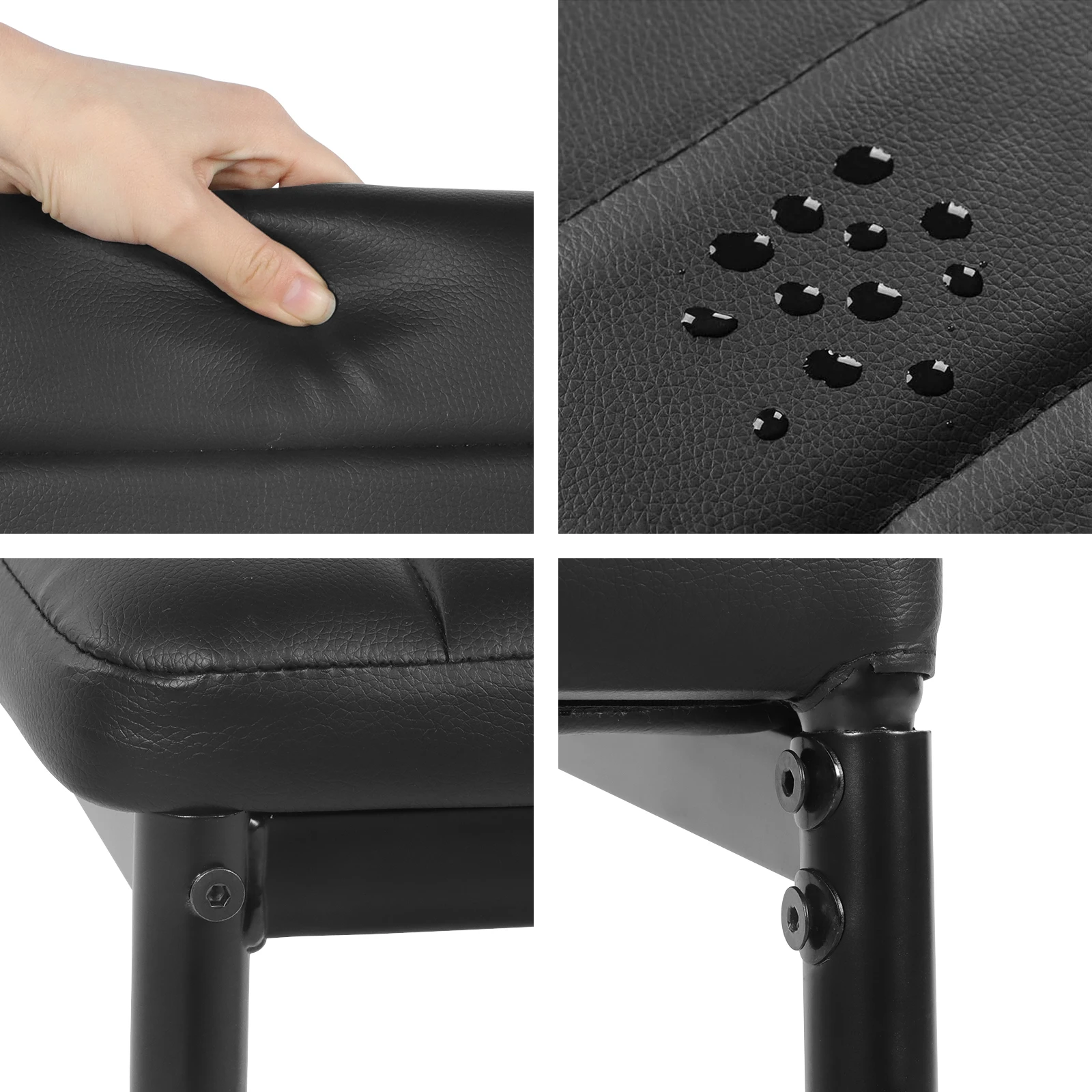 Ergonomic and consists of welded metal frame, sponge and PU leather. comfortable and easy to put. The maximum load weight can reach 120/264 pounds.