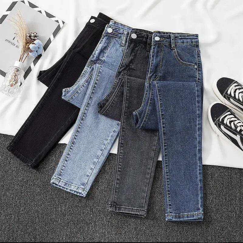 Black Grey Jeans Women’s Slimming Cropped Pants Chic Versatile Student Short Trousers Long Pants Slim Fit Sihouette Smoothing