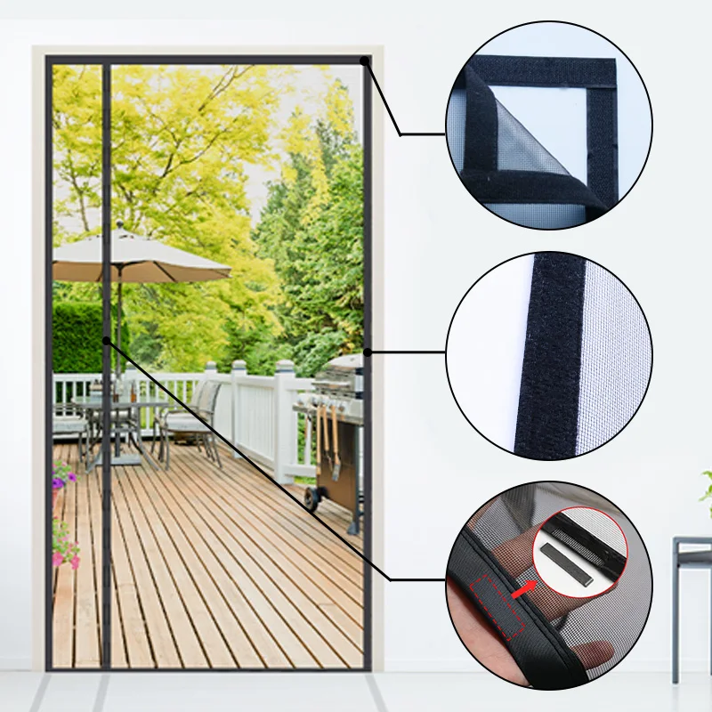 Black Magnetic Door Screen Window Mosquito Net Side Opening Custom Size Curtain Insect Mesh and Mosquito Proof Invisible Net