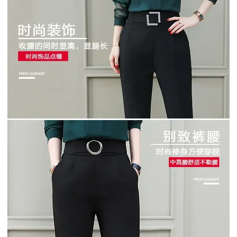 spring new fashion foreign style large pants women loose slim high waist elastic casual suit Harlan