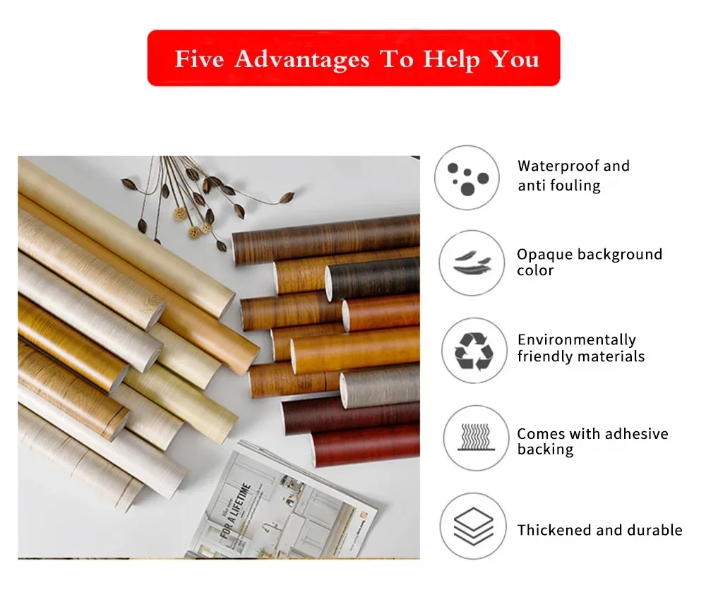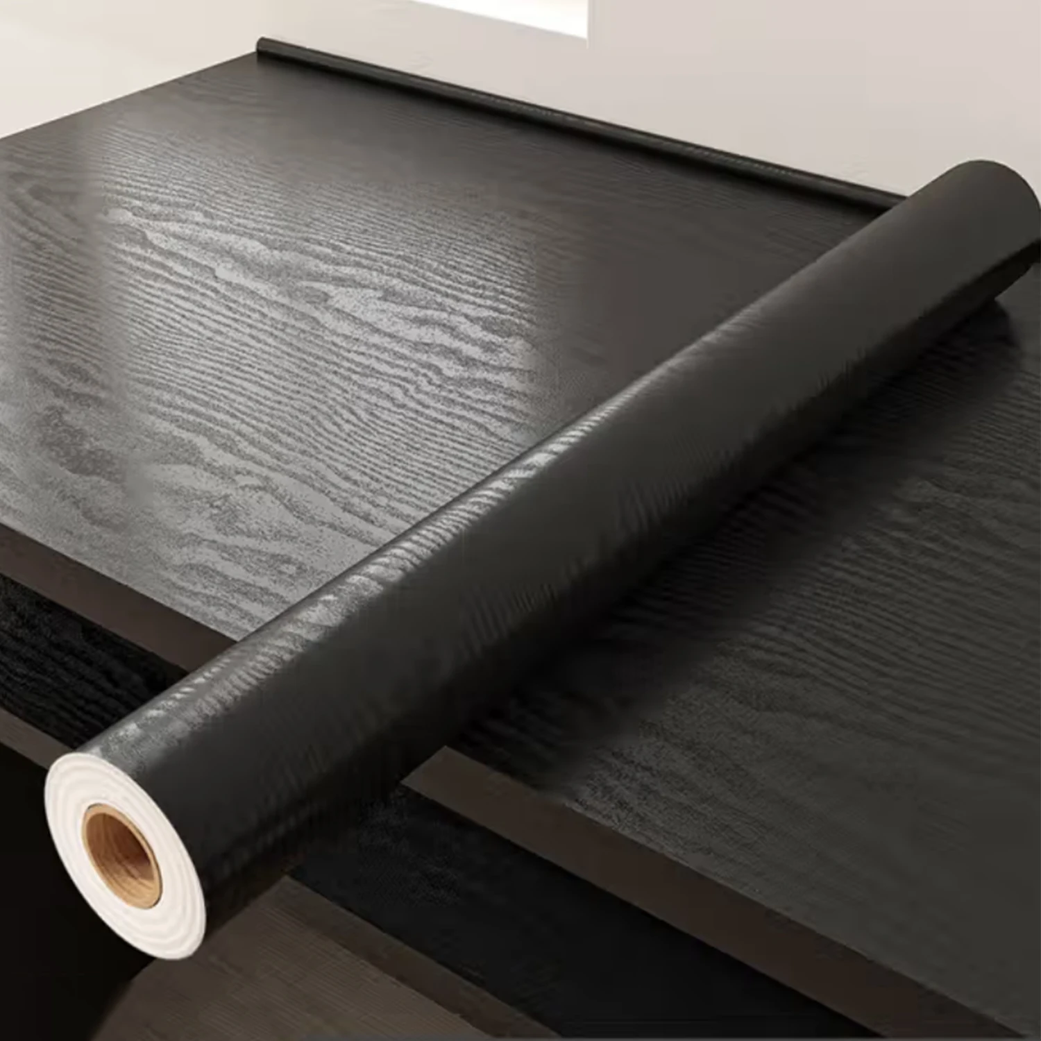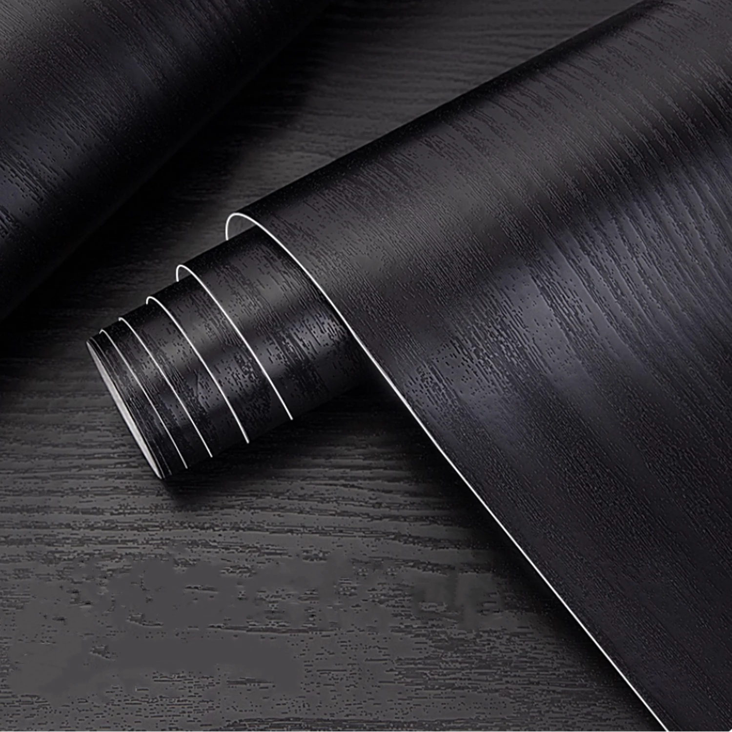 Black wood grain thickening wallpaper boeing film furniture kitchen cabinet pvc self-adhesive stickers kitchen vinyl wallpaper