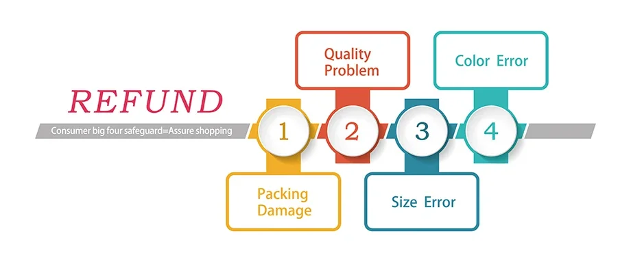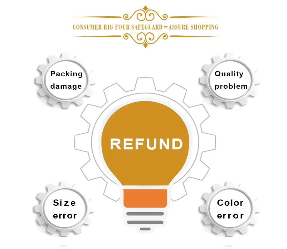 If the packaging is damaged, the quality problem, the wrong size, the wrong color, we unconditionally refund