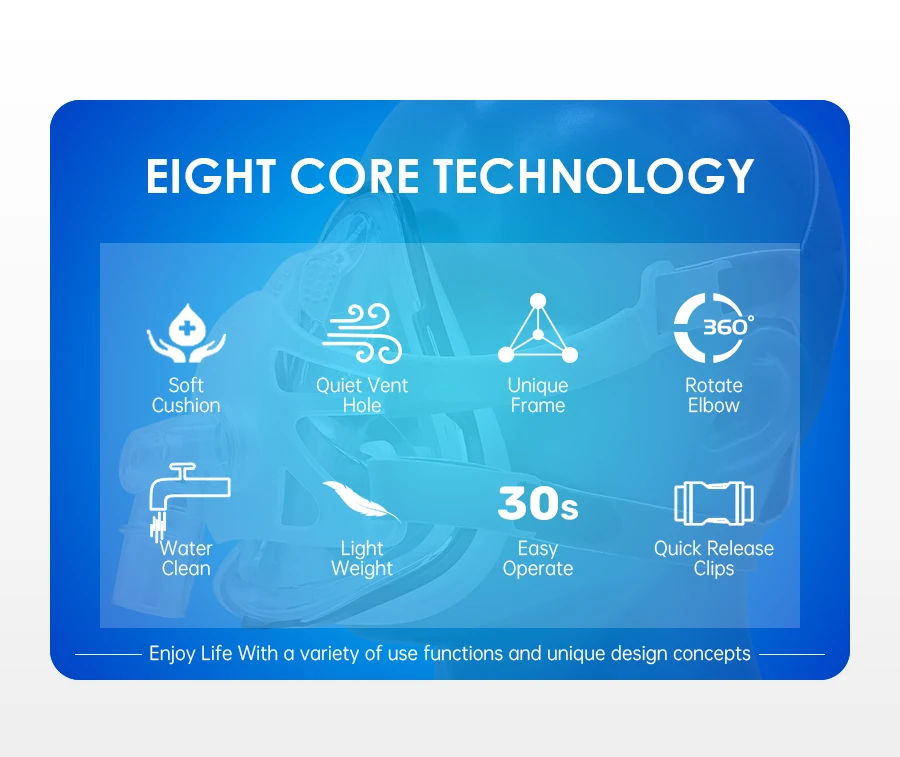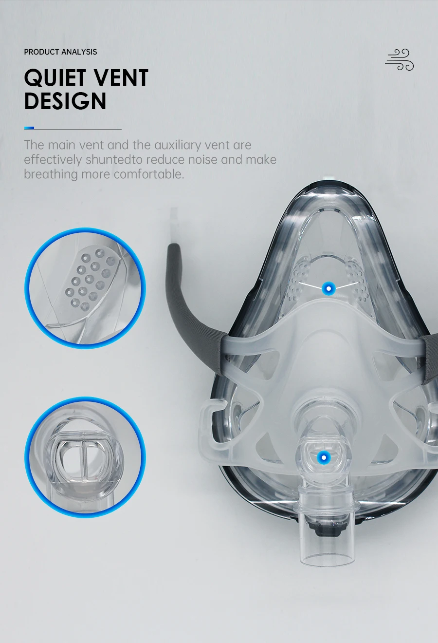 BMC CPAP Full Face Mask without Forehead Bipap APAP with Headgear Supplies for Sleep Apnea Anti Snoring Breathing Accessories