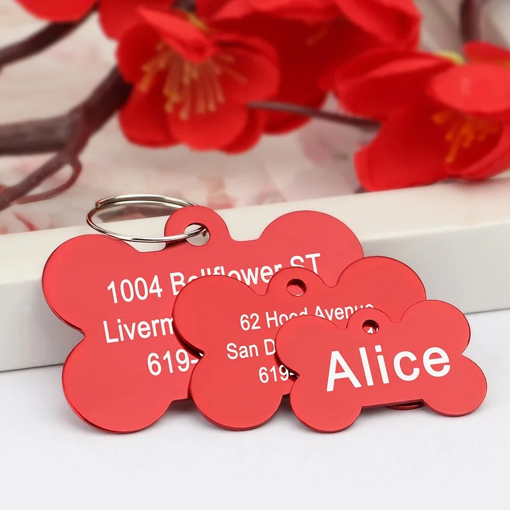Bone Shaped Pet ID Tag Personalized Dog Cat Name Tags Anti-lost Free Engraving Collar Pendant Bone for Small Medium Large Pet