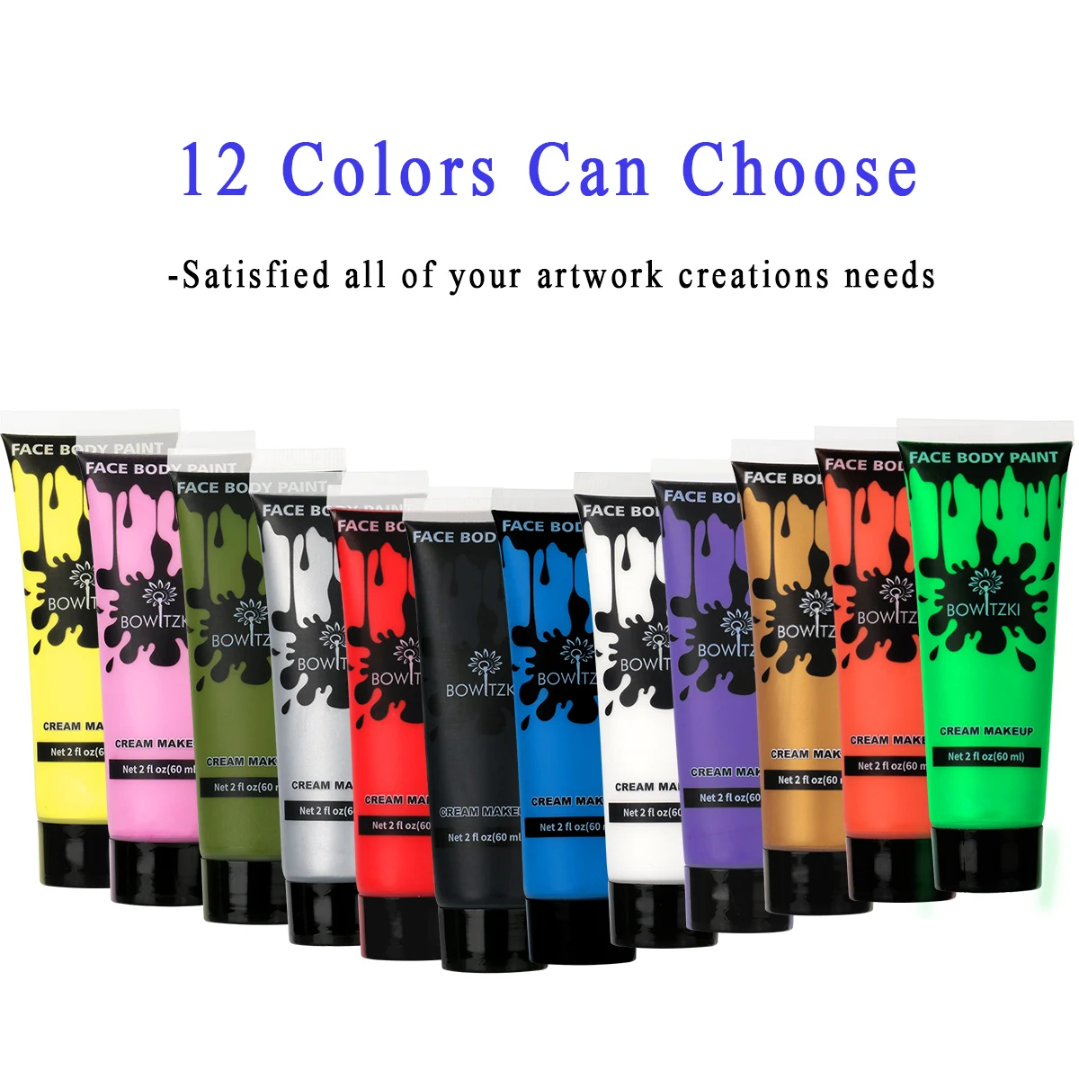 Bowitzki Face and Body Paint 2oz Cream Makeup 60ml Water Based Face Painting Special Effects For Adults Children Kids Halloween