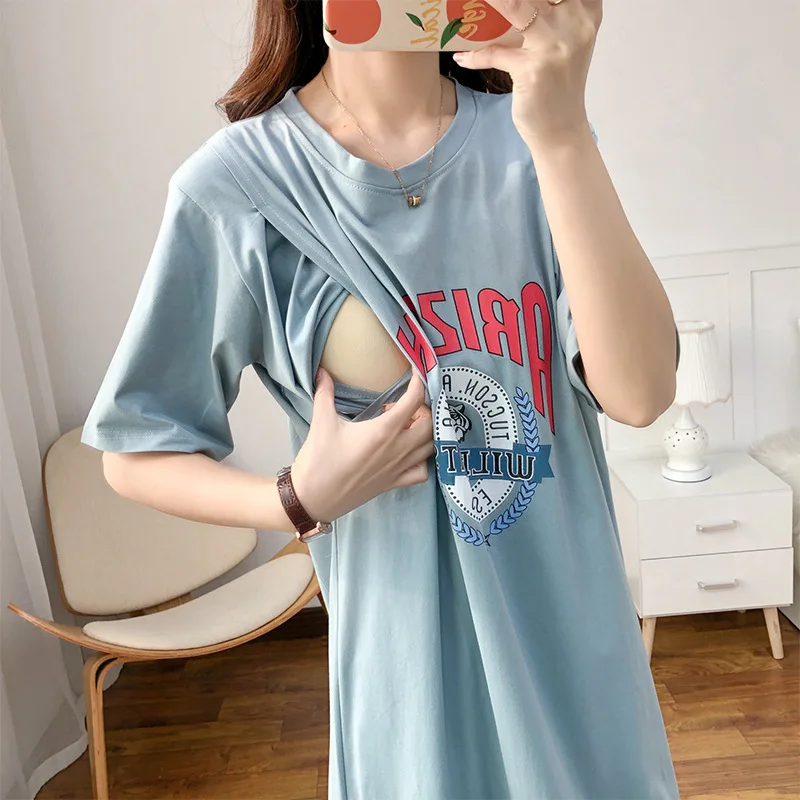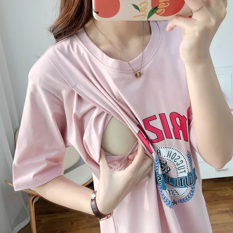 Breastfeeding Dress Home Clothes For Women Summer Maternity Nursing Dresses Pregnant Loose Casual Feeding Clothing Pregnancy
