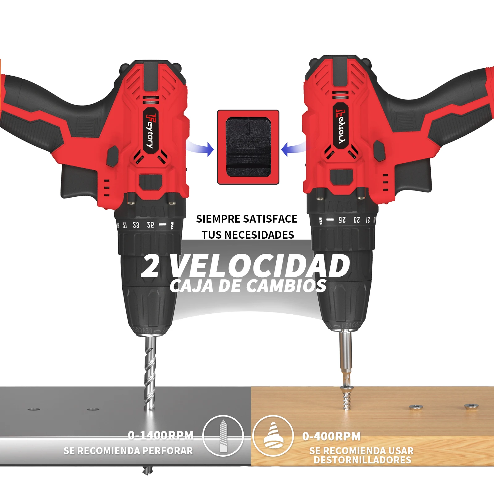 The 2-speed operation (0 ~ 400/0 ~ 1400 rpm) allows the user to easily control and precision in a range of different screwing/drilling tasks.
