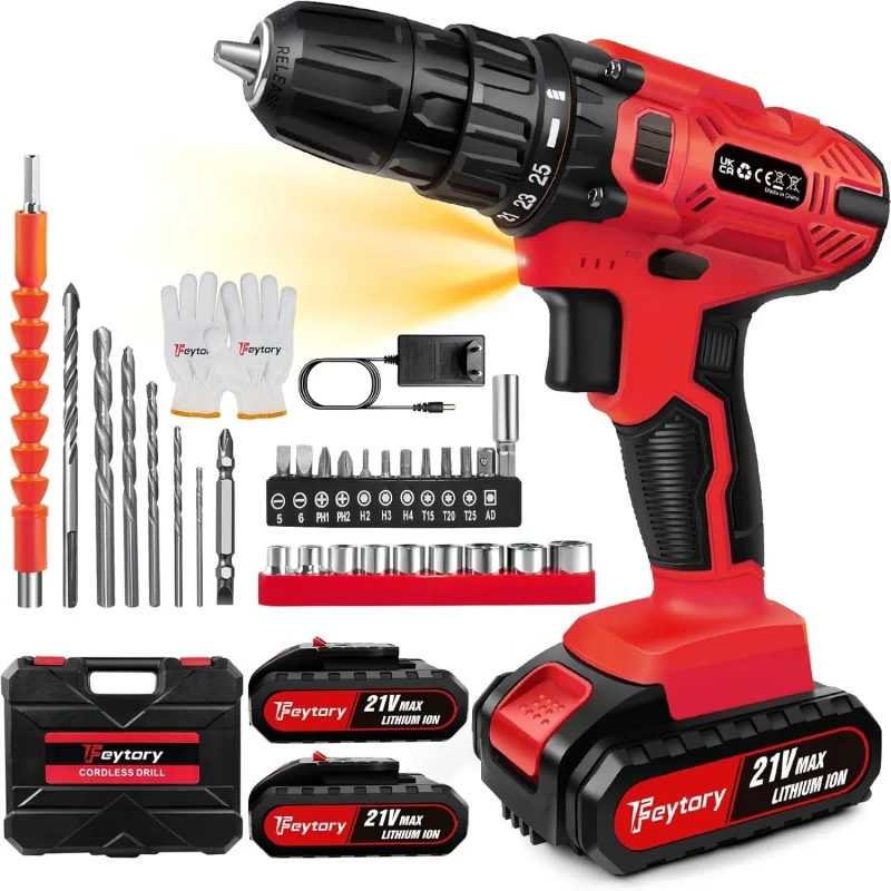 Compact and lightweight structure make this cordless drill driver set easy to use and comfortable in the hand, come with 26 pieces drill kits and a kit box, easy to carry, meet your different applications, help you different DIY projects around the home, garden or garage in less time.