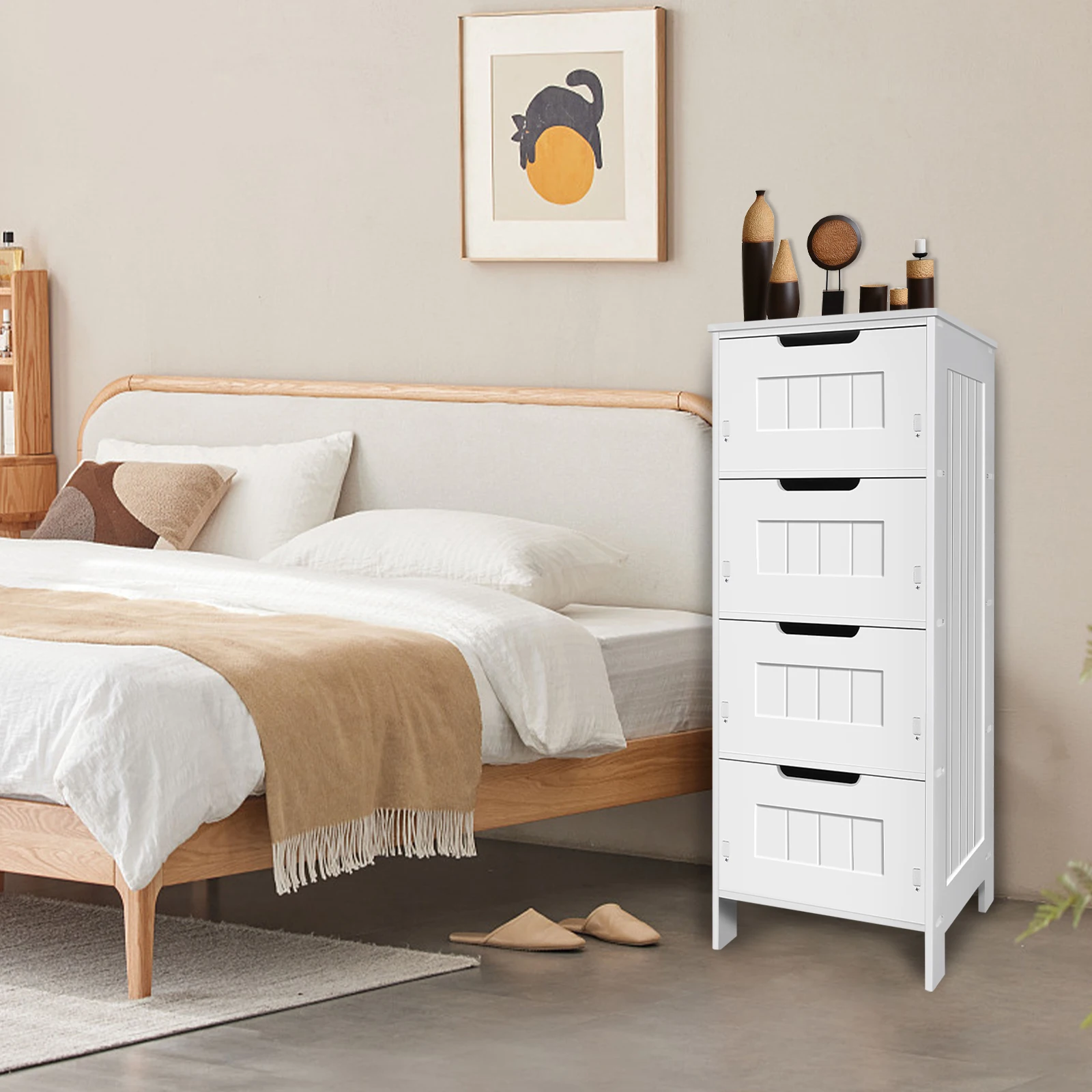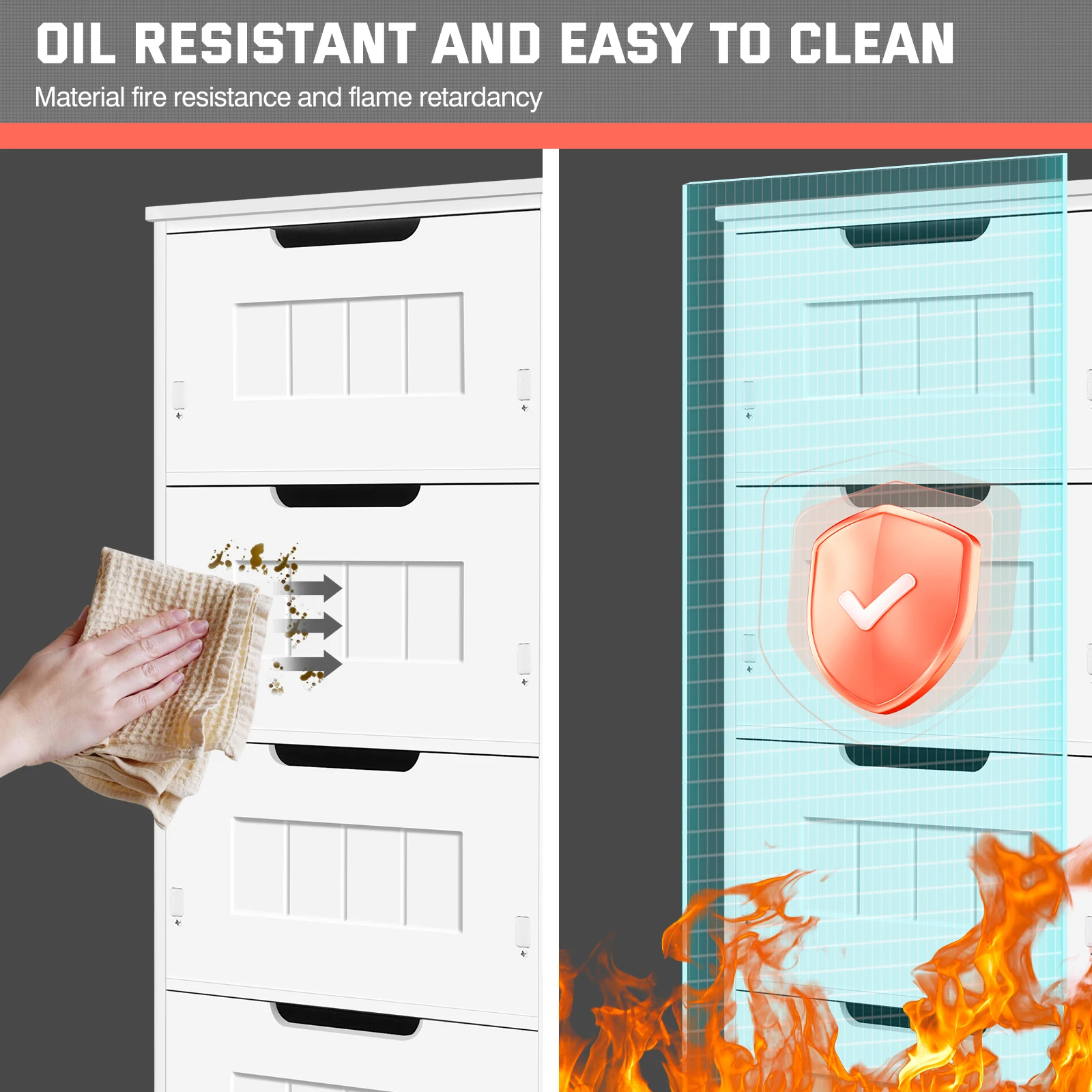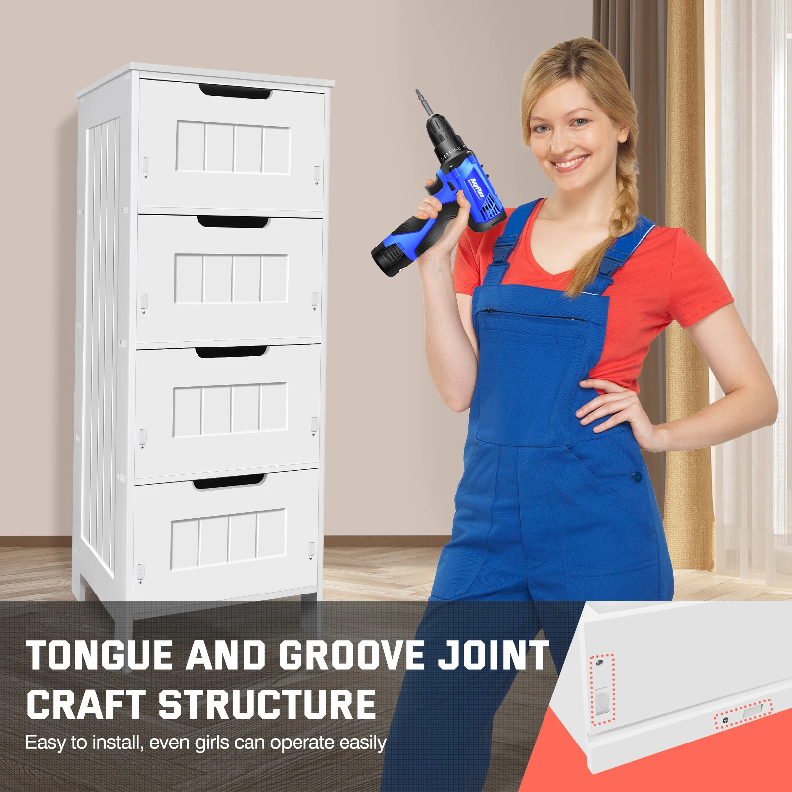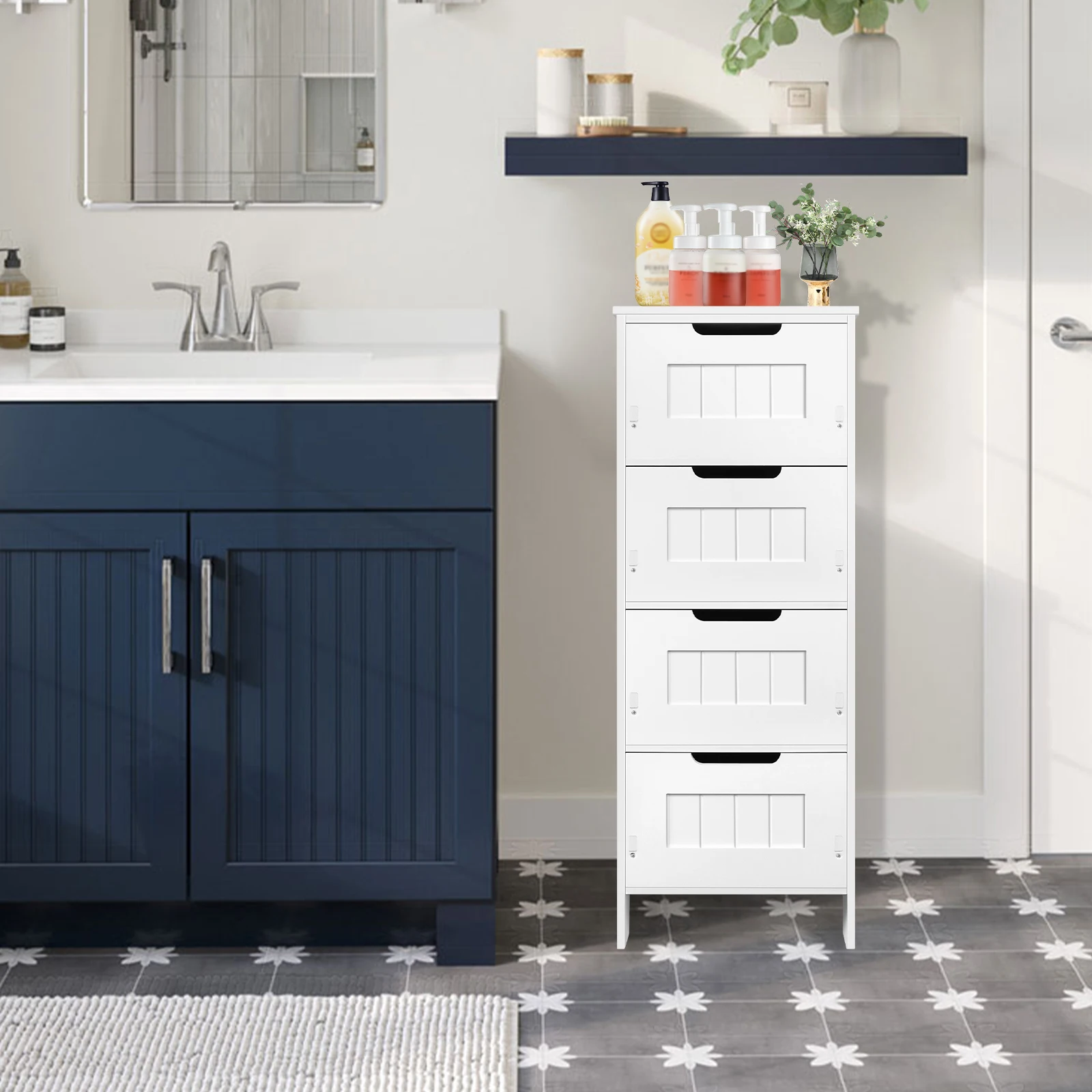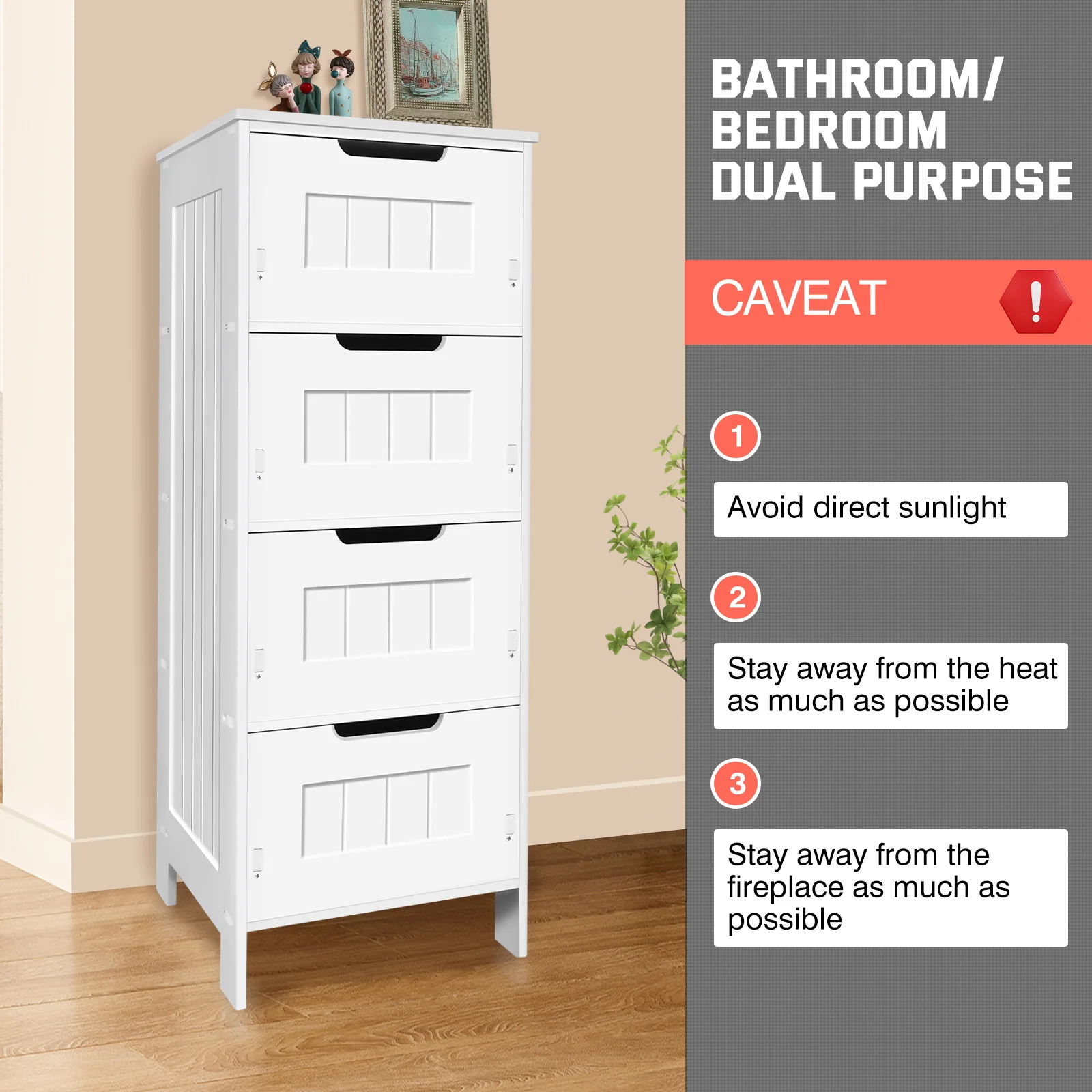 1.【High-quality Materials】-This 4 drawer bathroom storage unit is made of PVC material which is a new eco-friendly high-quality materials, waterproof,moisture-proof, durable and long service life.