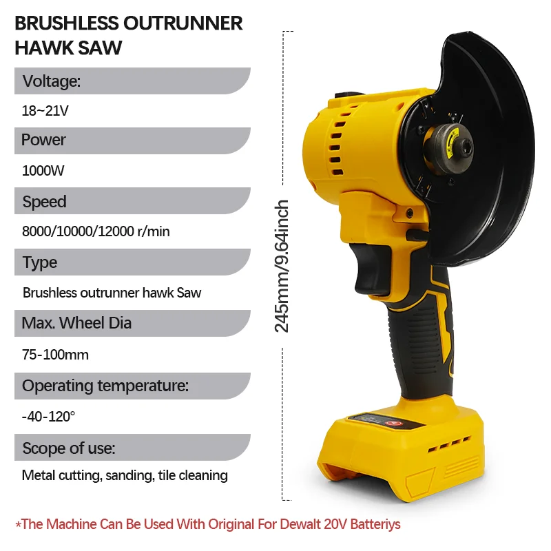 Brushless Circular Saw Metal Steel Cutting Grinder Mini Cordless Angle Grinder Electric Tool For Dewalt 20V Battery Pin