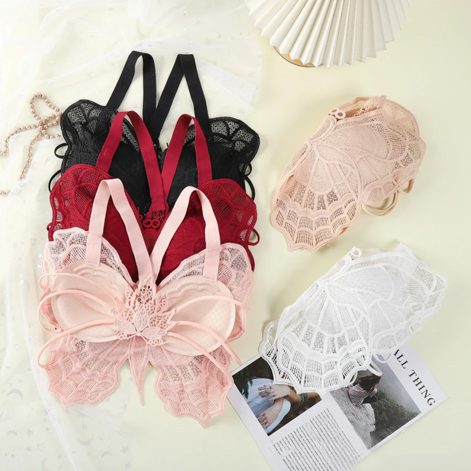 Butterfly shaped Lace Bras Women Sexy Beach Crop Top Hollow-out Bralette Female Underwear Backless Chest Wrap Padded Brassiere