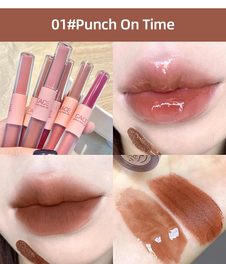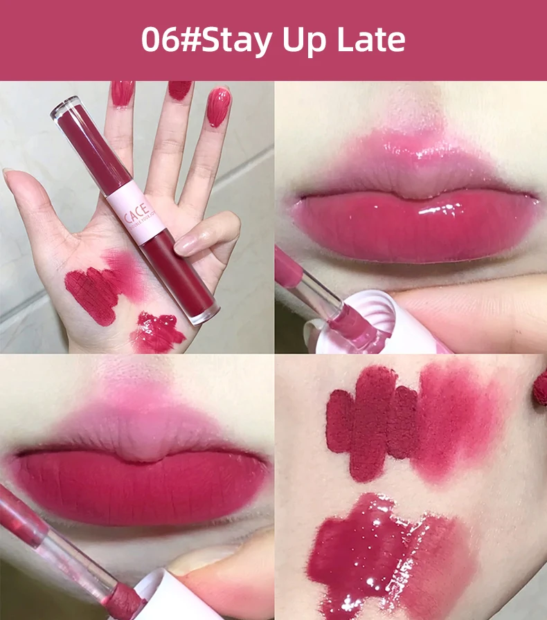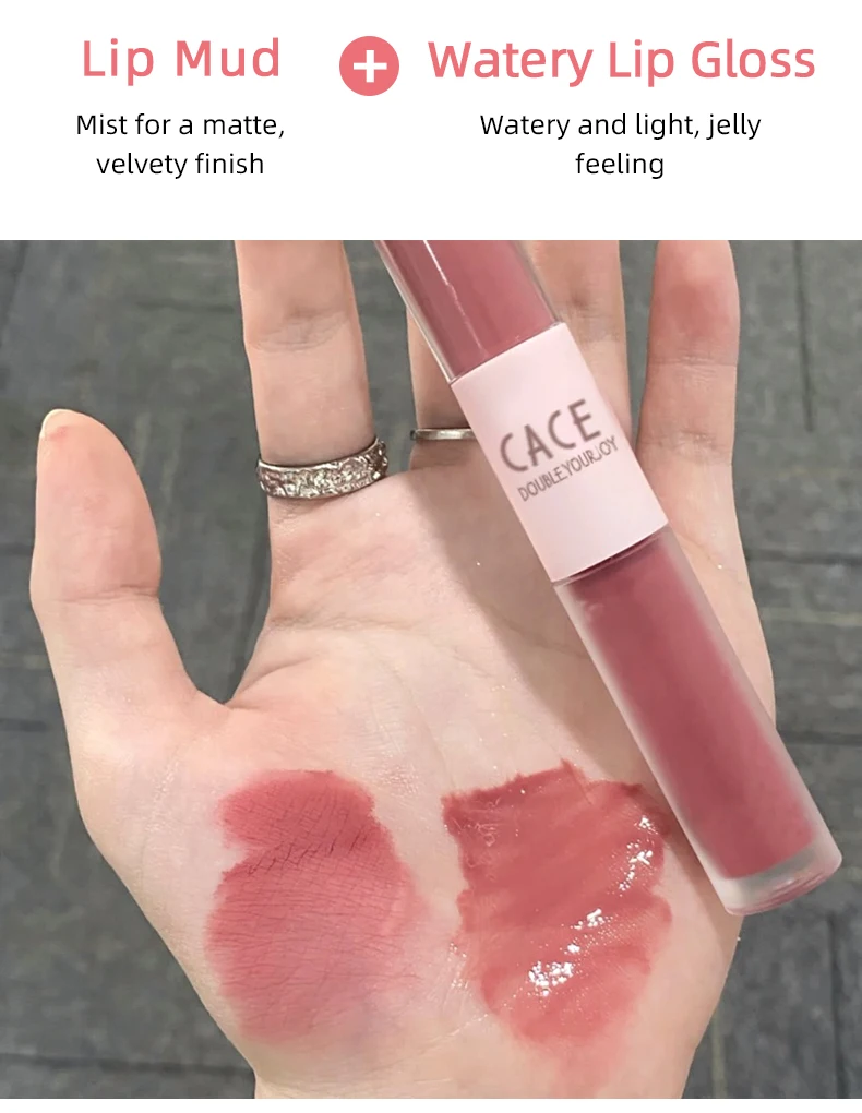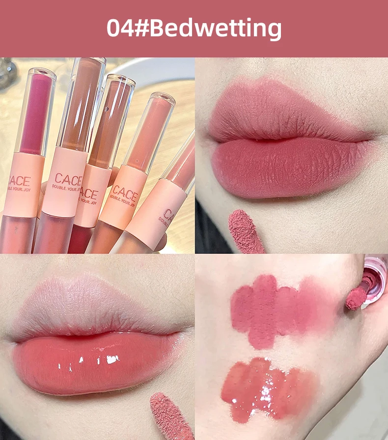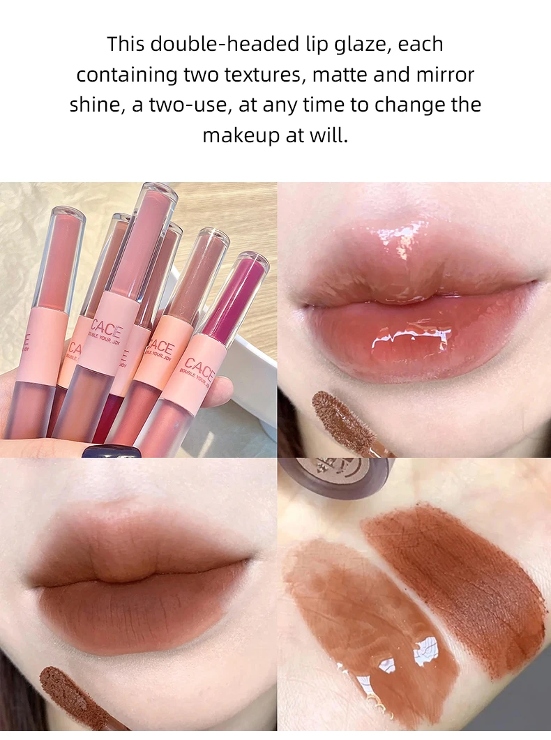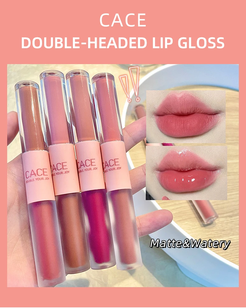 CACE Double Head Lip Gloss Sexy Red Lip Makeup Lip Mud Mirror Water Gloss Lip Glaze Matte Lipstick Waterproof Korean Cosmetics