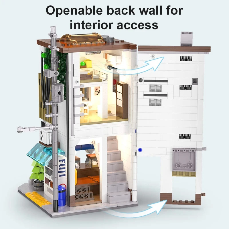 Cada Japanese Sushi House Street View Bricks Shop LED Japanese Steamed Bun House Architecture Building Blocks Summer Cafe Toys