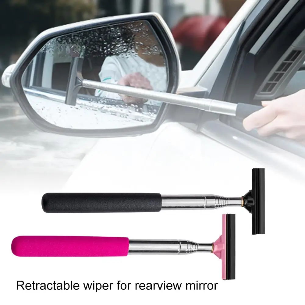 Car Telescopic Rearview Mirror Squeegee Portable Rainy Window Wiper Side Car Tool Cleaning Handheld Glass Mirror A4E9