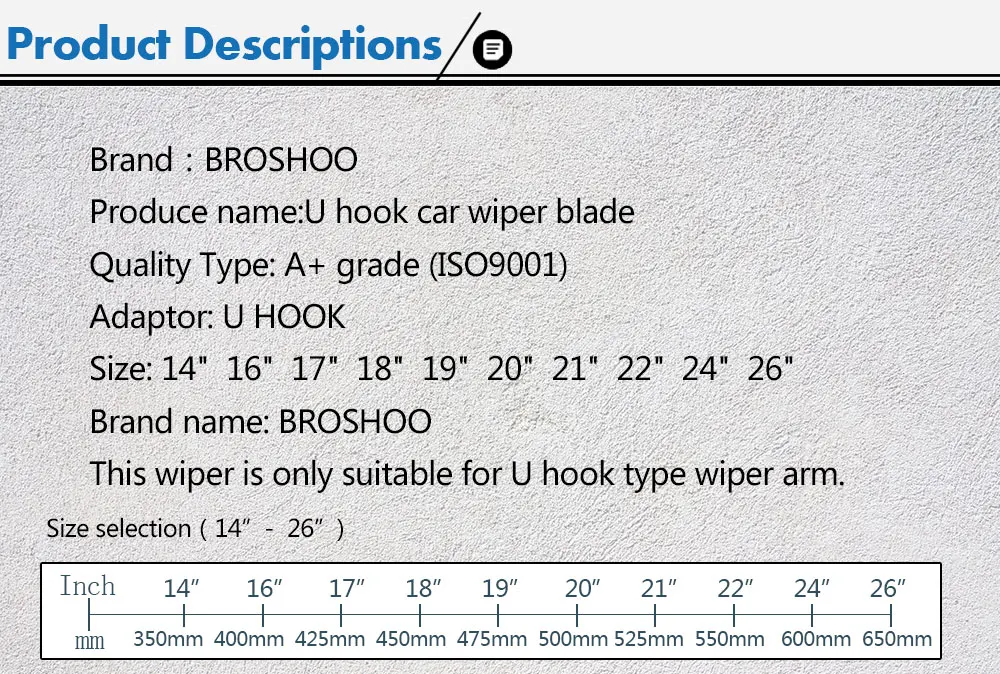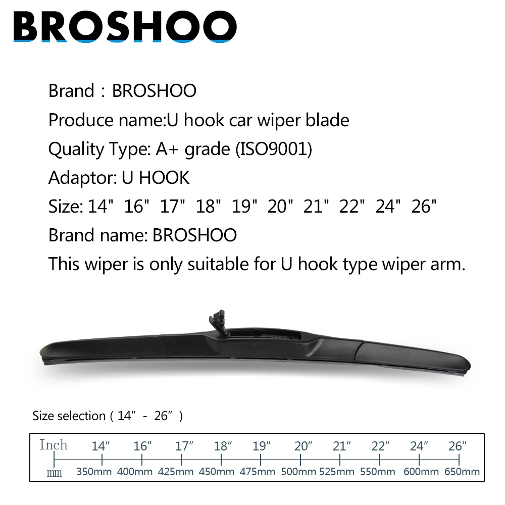 Car Wiper Blades 14″16″17″18″19″20″21″22″24″26″ Universal U hook Rubber Windscreen Windshield Hybrid Wipers Auto Car Accessories