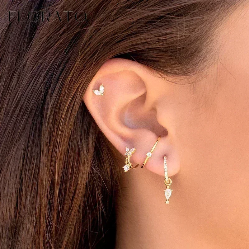 Cartilage 925 Silver Earrings Fashion C-shaped Zircon ear studs European American Geometric Piercing Earrings For Women Jewelry