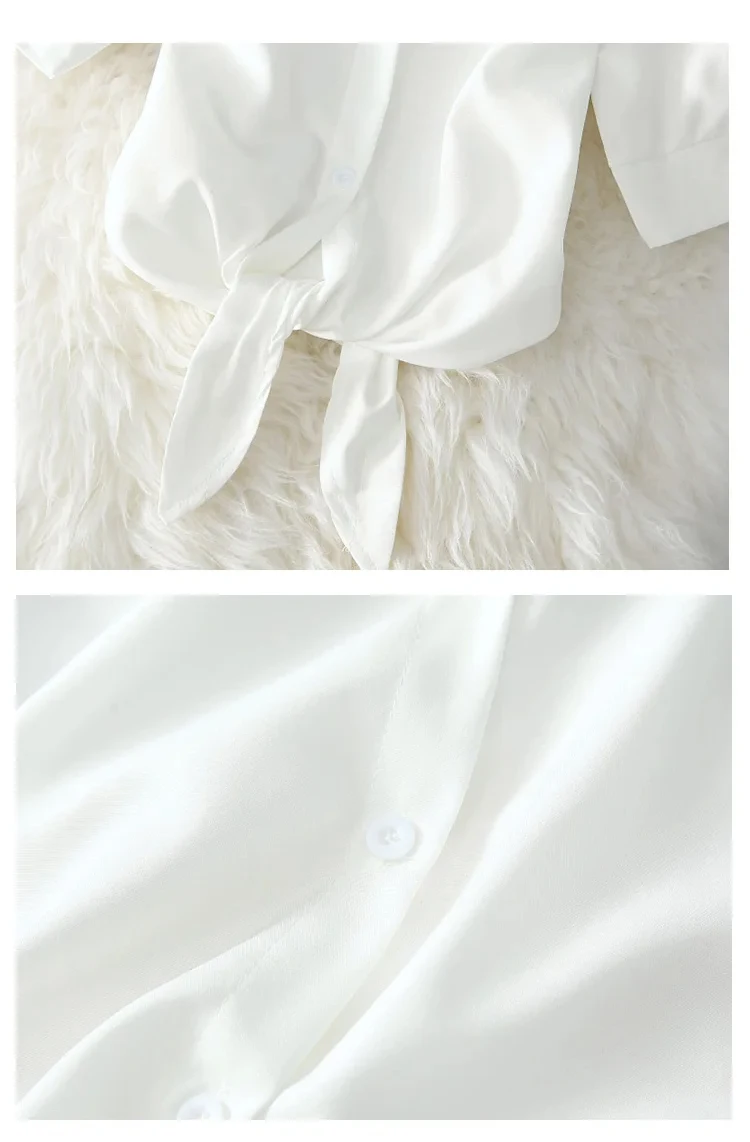 Be the first to review “Casual White Blouse Summer Women Clothes Elegant Solid Button Short Sleeve Shirt Fashion Bow Belt Waist Office Lady Tops 19870”