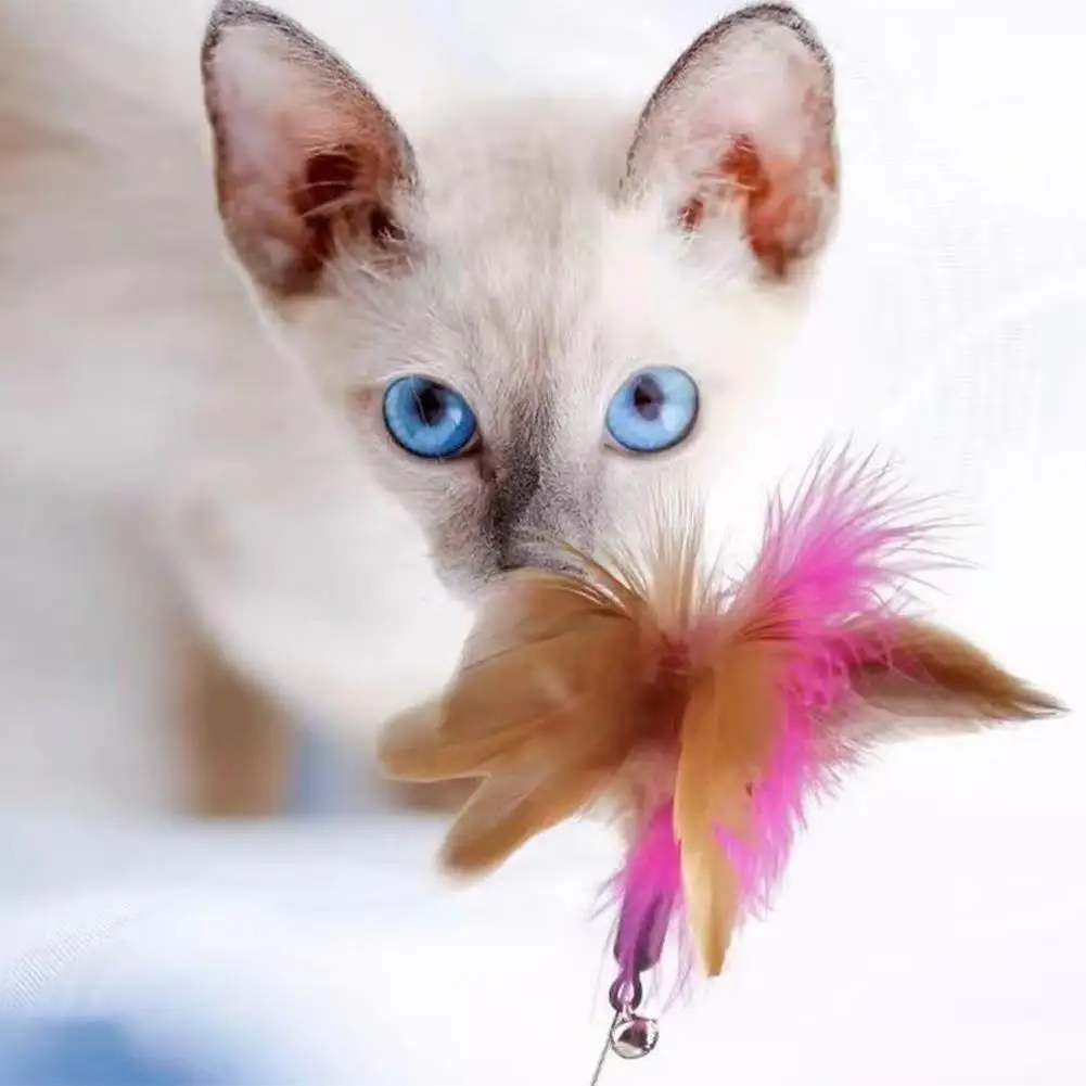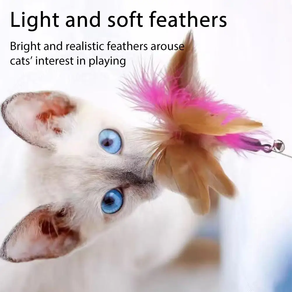 4. The cat teaser wand head features feathers and other attractive parts to stimulate the cat’s hunting instincts and enrich their mental life.