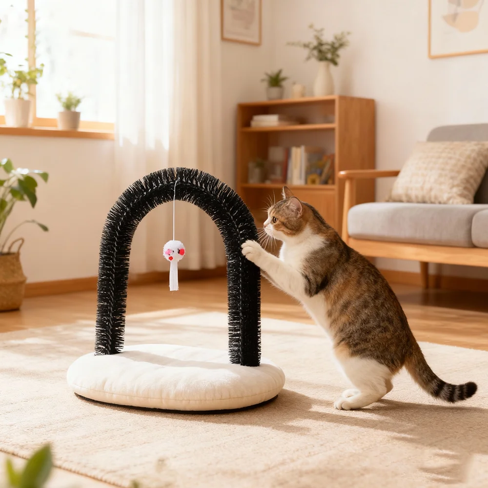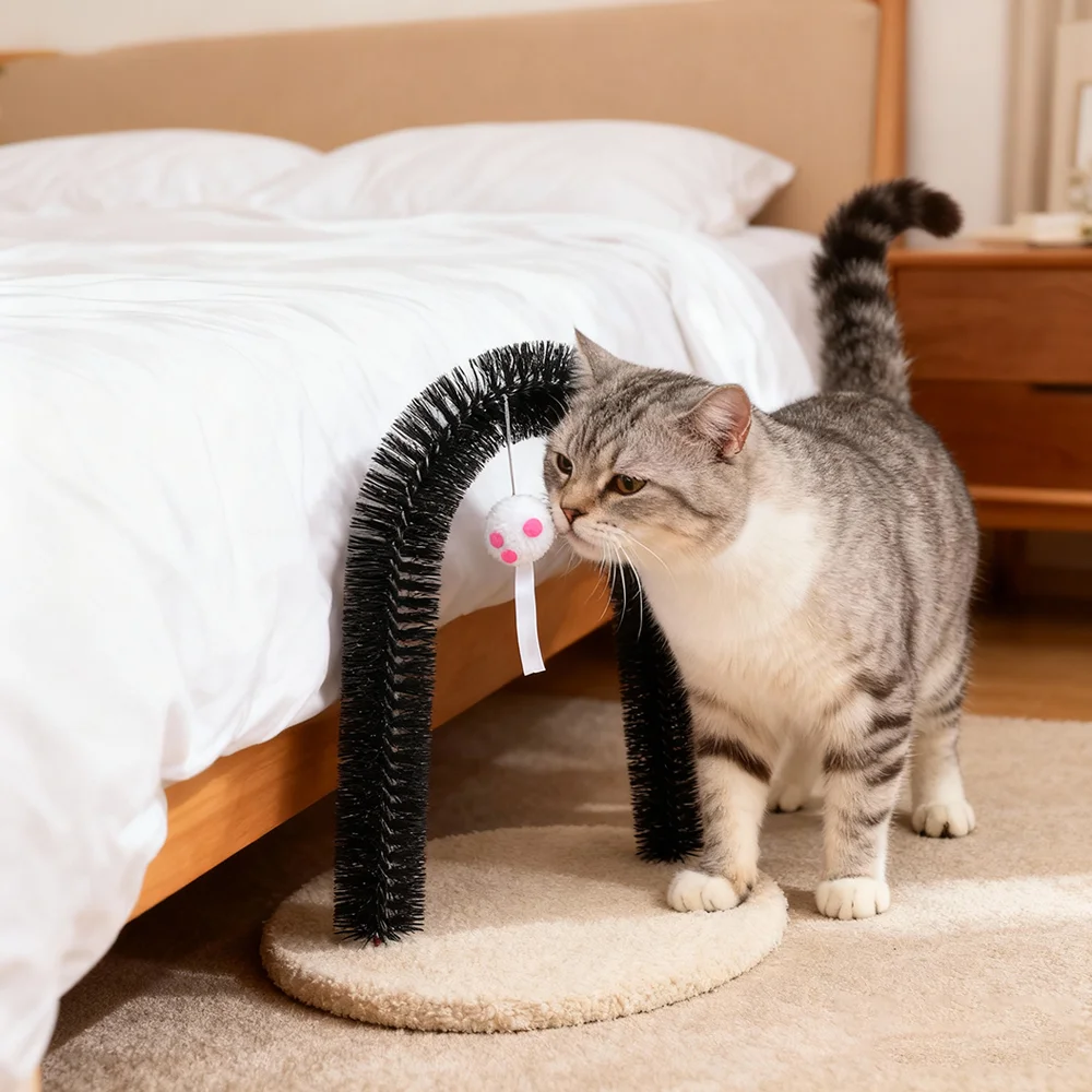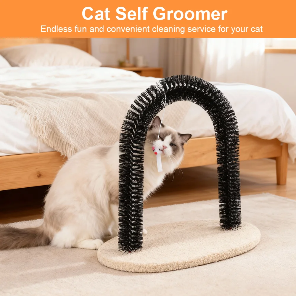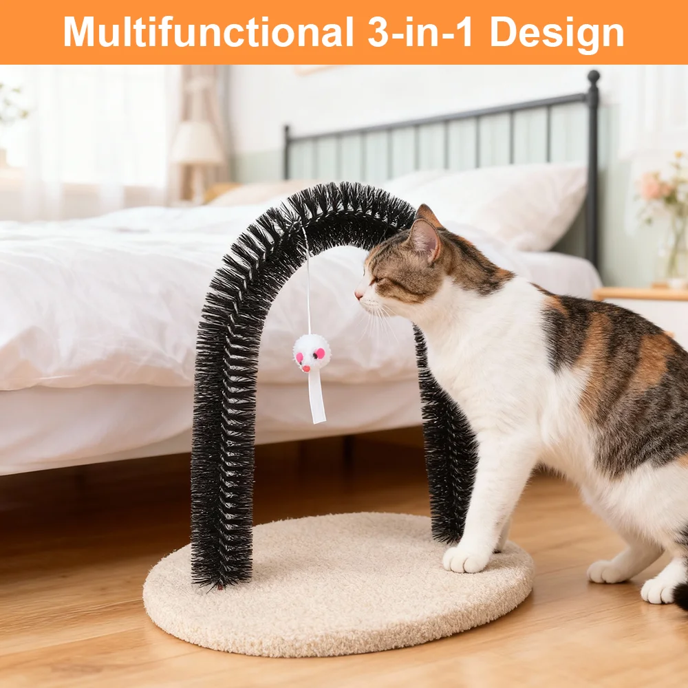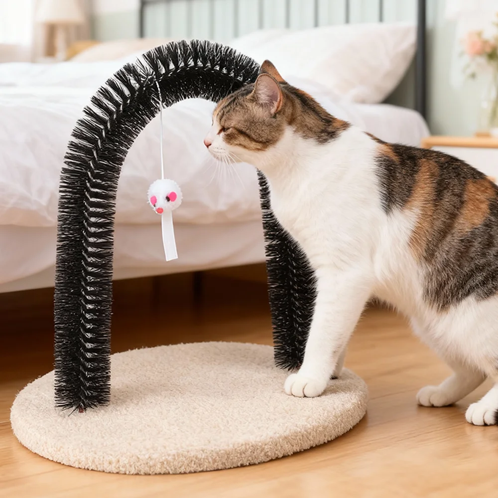Cat Toy Arch Self Groome Pamper Feline with A Massage Grooming Rubbing Brush with Scratching Pad Toy for Cats Interactive Toys