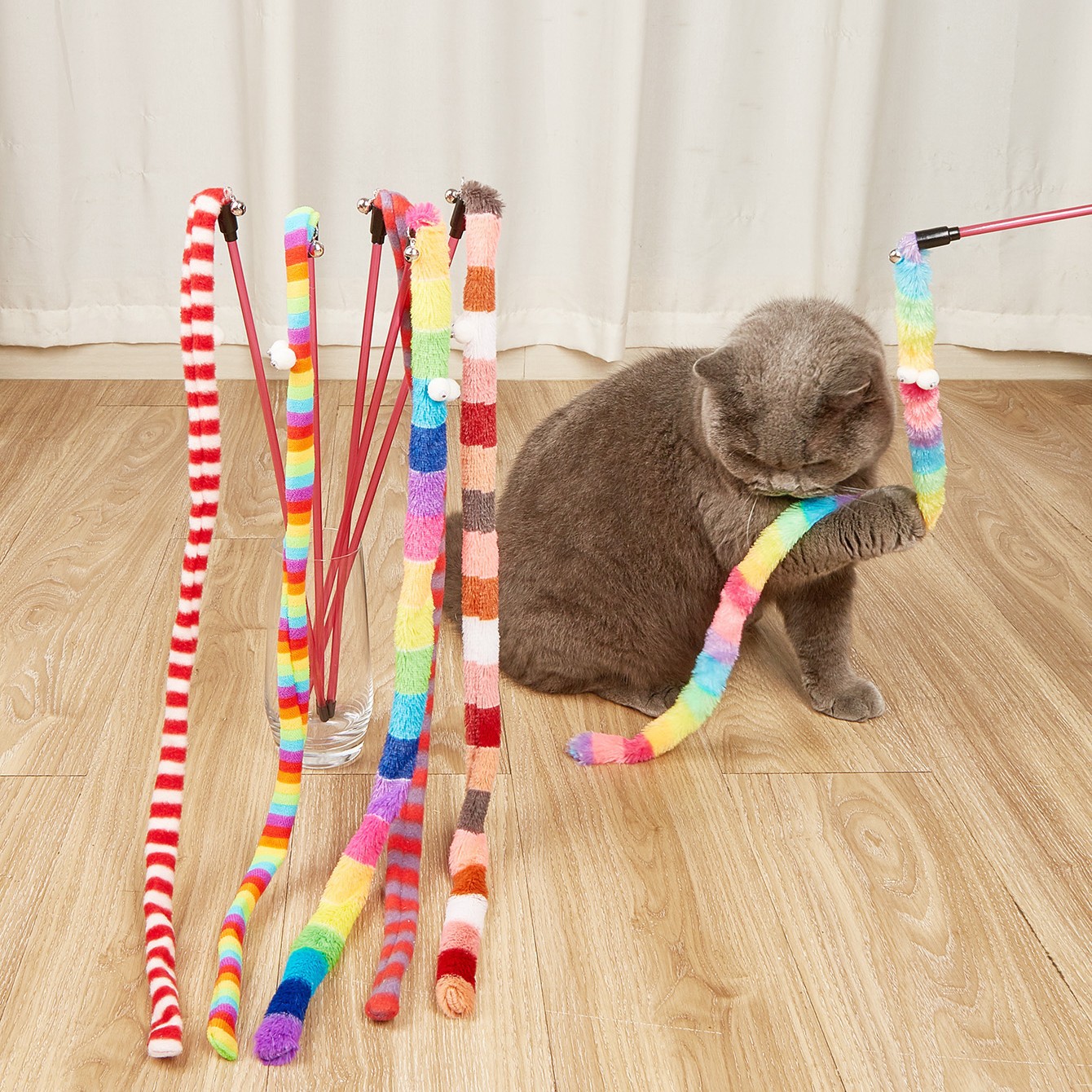 Cat Toy Caterpillar Cat Teaser Wand Cat Interactive Toys Funny Feather Colorful Rod Teaser Wand Pet Cat Supplies Cat Accessory