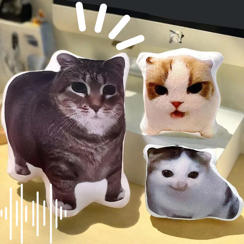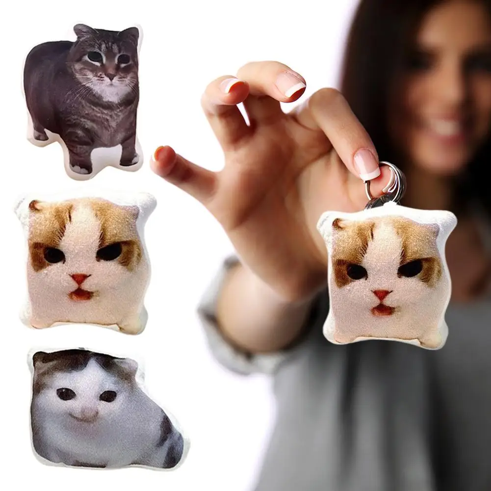 Cat Voice Keychain With Sound Decompression Realistic Meow Sound Kids Toy Soft Plush Portable Squeeze Talking Cat For Bag