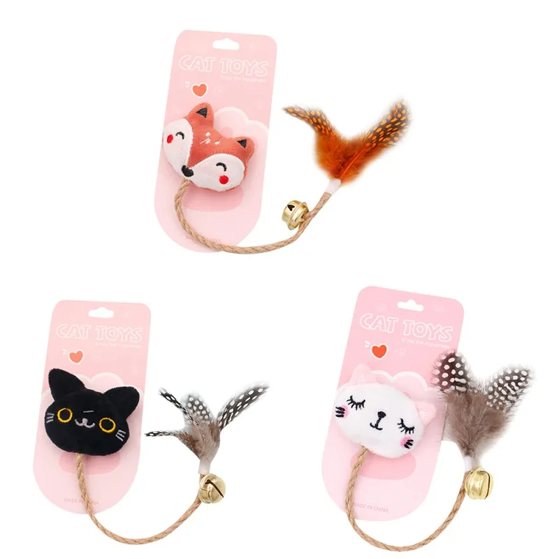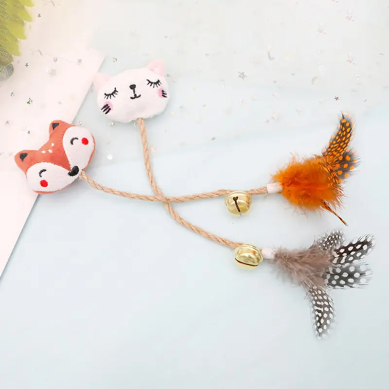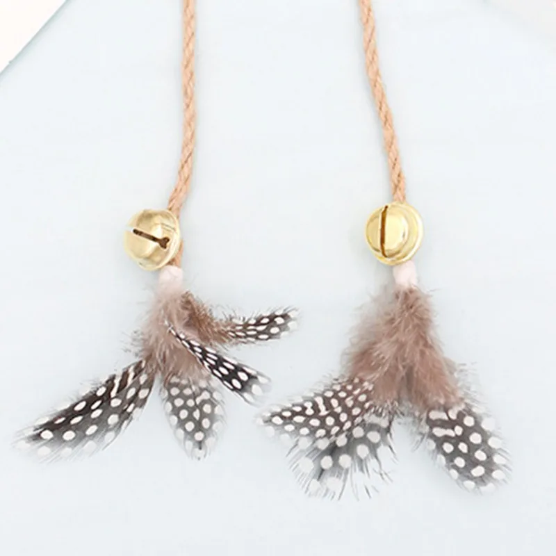 Material: Short Plush+metal small bell,hemp rope, artificial feather