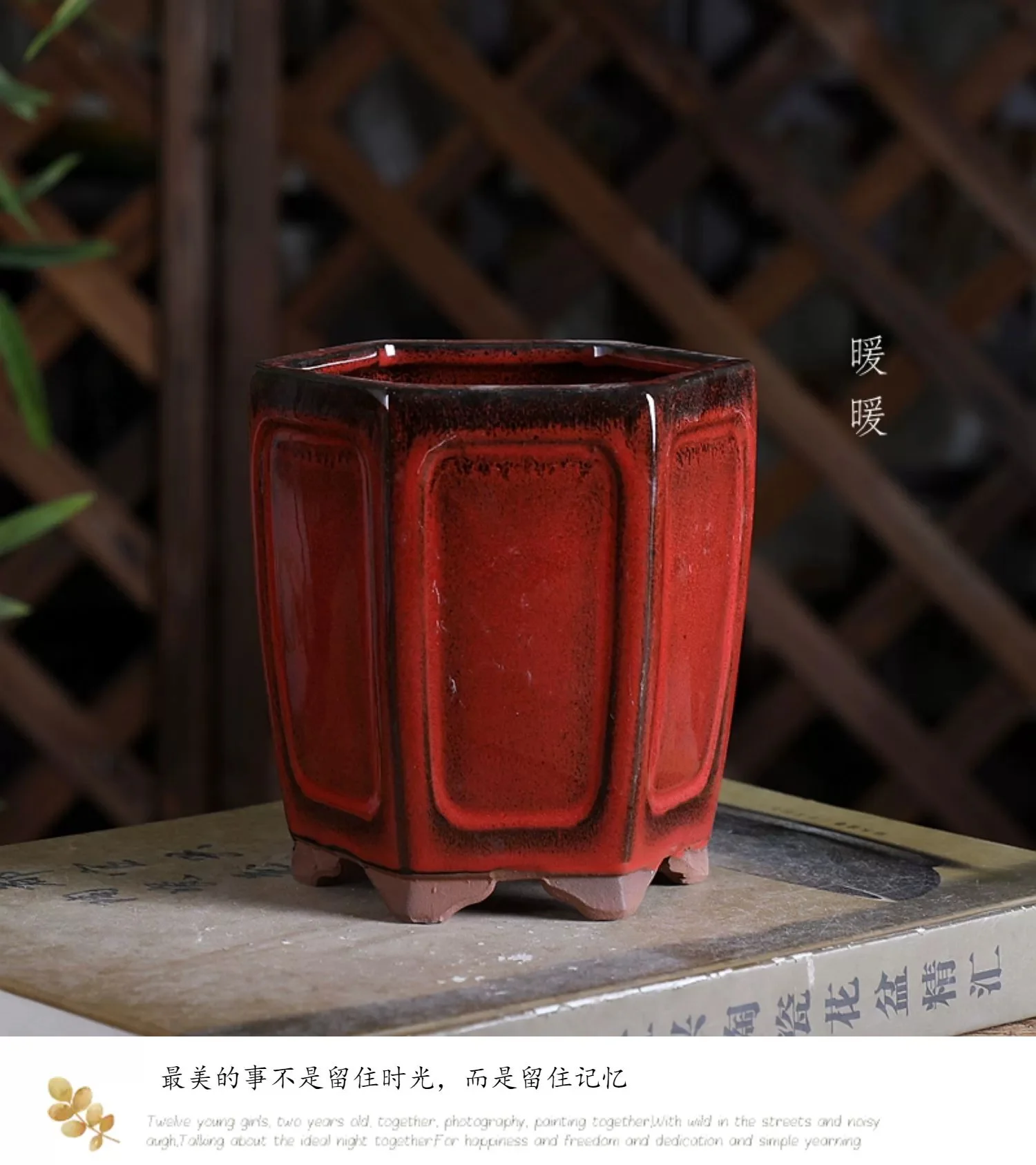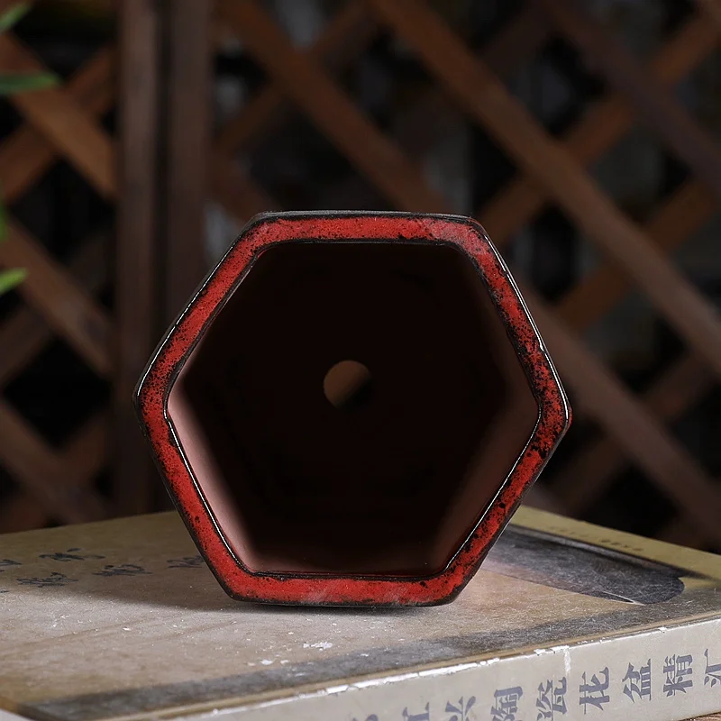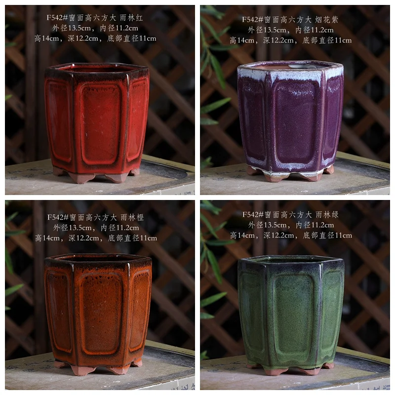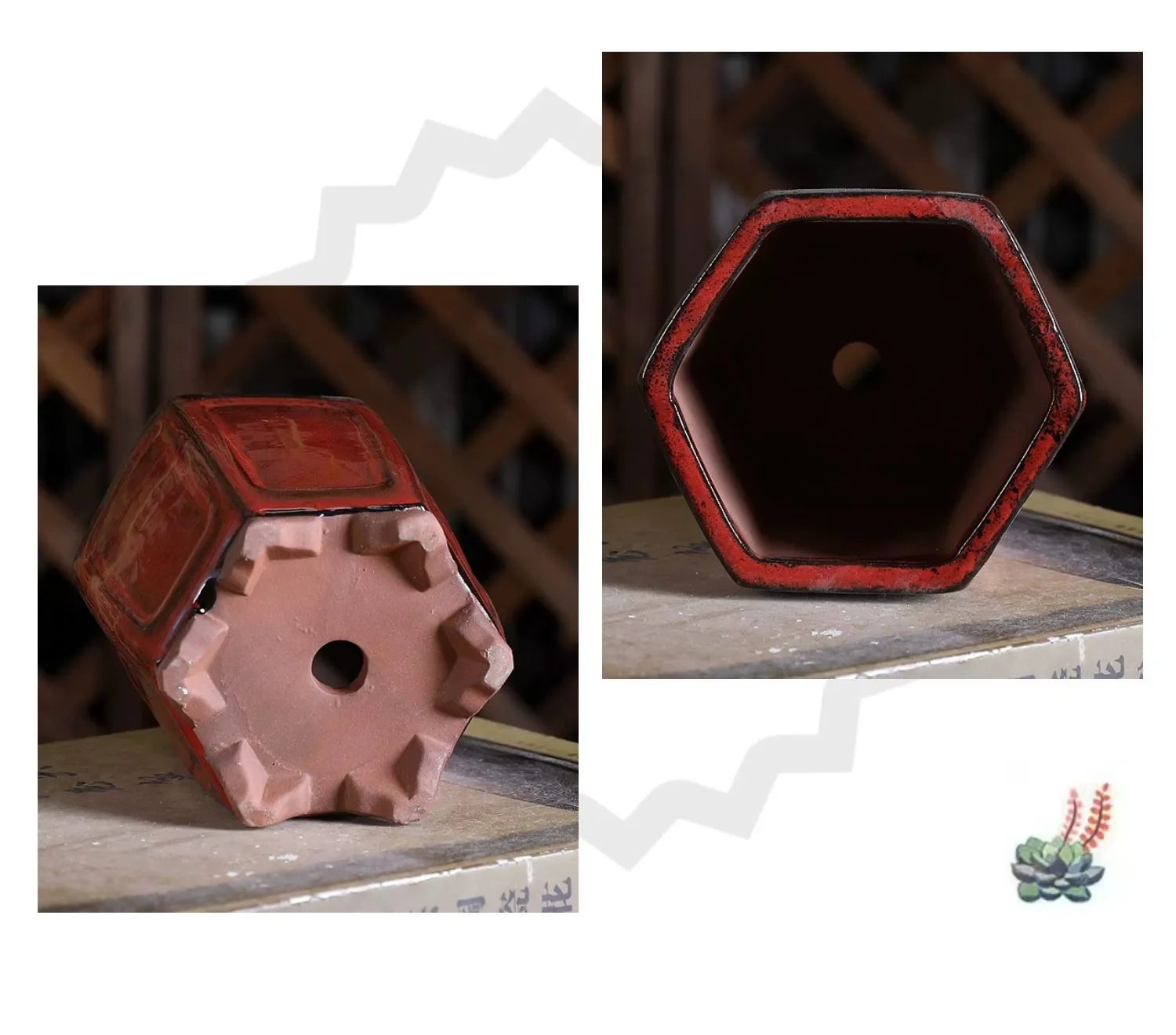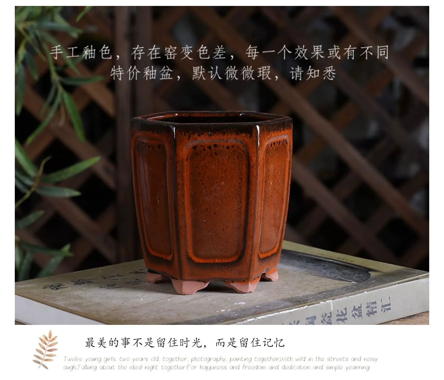 Ceramic Round Hexagon Bonsai Pot, Chinese Dormitory Room, Table, Garden Decoration, Colorful Glazed, Traditional, Chinese