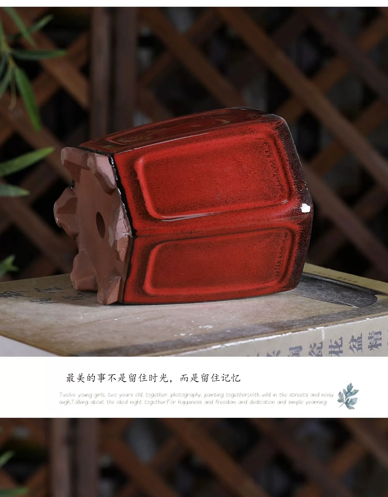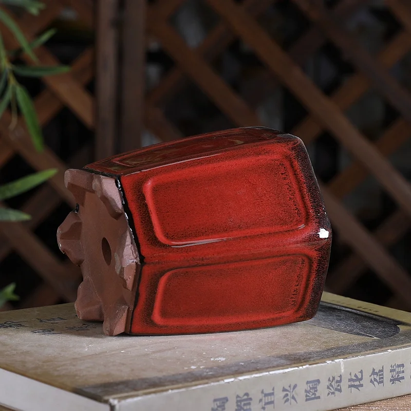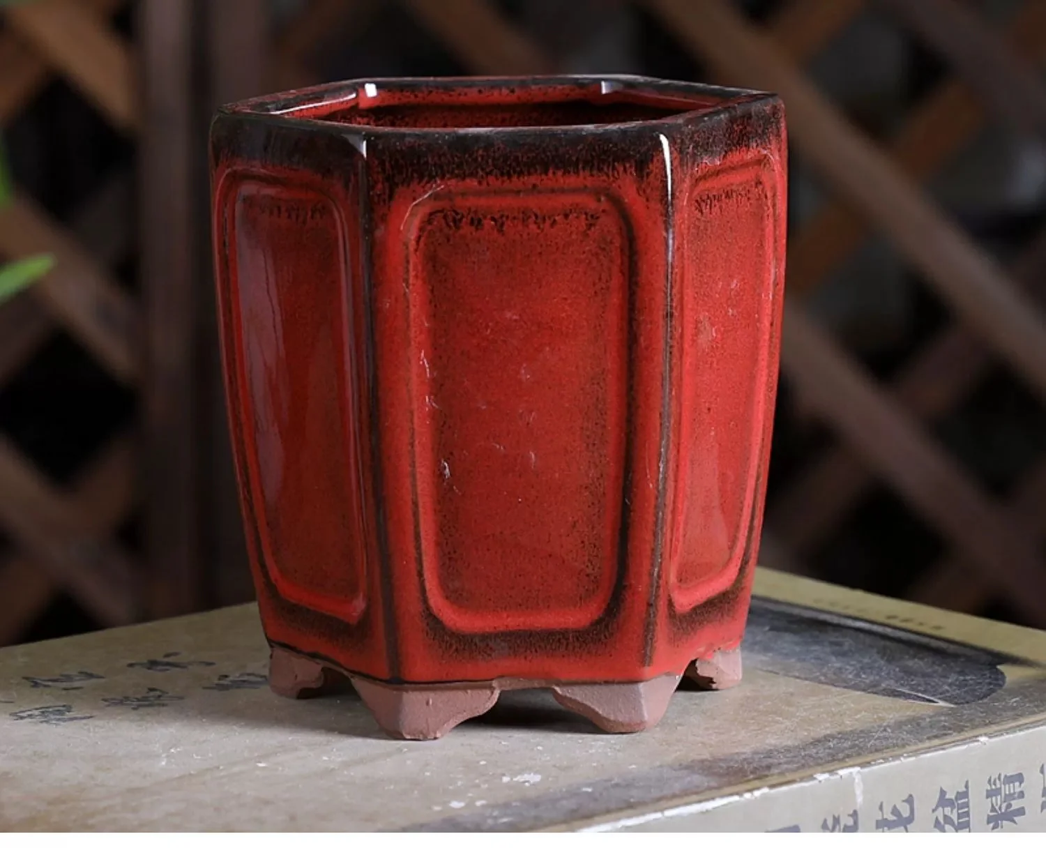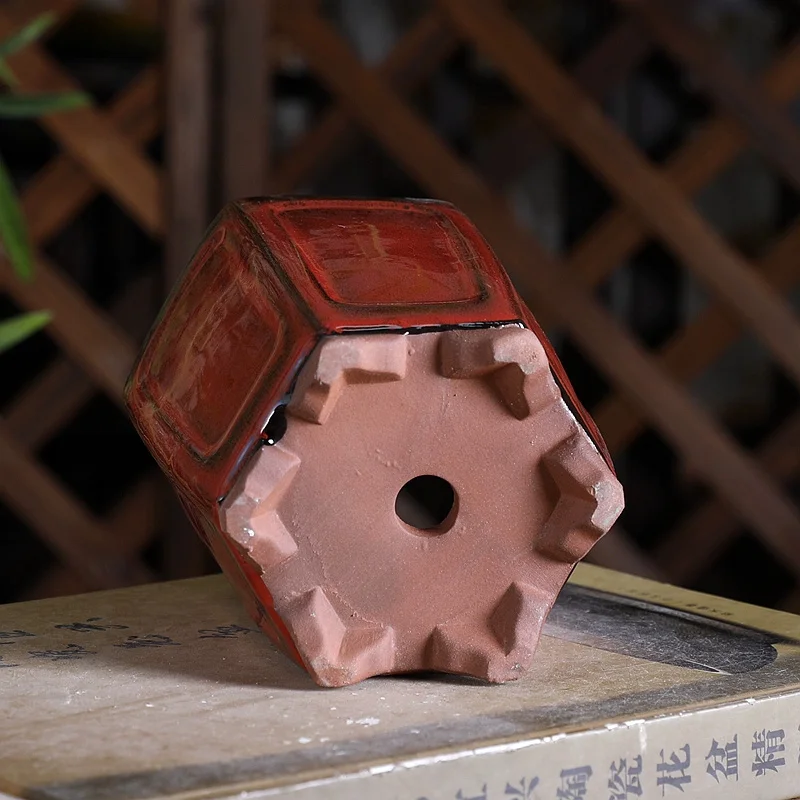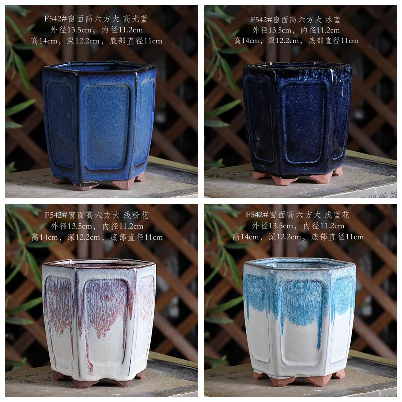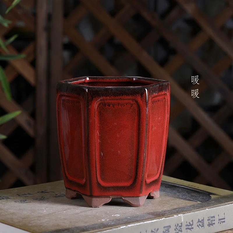 Ceramic Round Hexagon Bonsai Pot, Chinese Dormitory Room, Table, Garden Decoration, Colorful Glazed, Traditional, Chinese