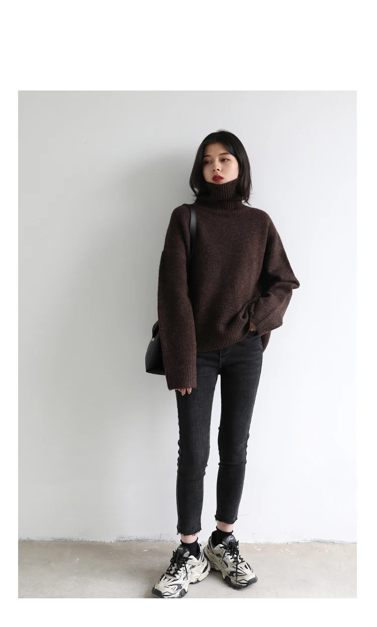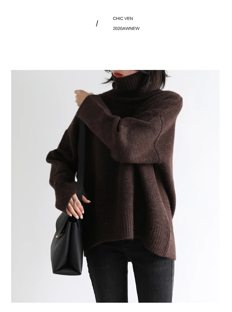 CHIC VEN Korean Women’s Sweater Loose Turtleneck Sweaters Warm Solid Pullover Knitwear Basic Female Tops Autumn Winter 2022