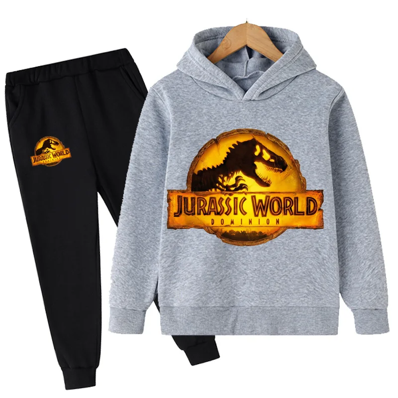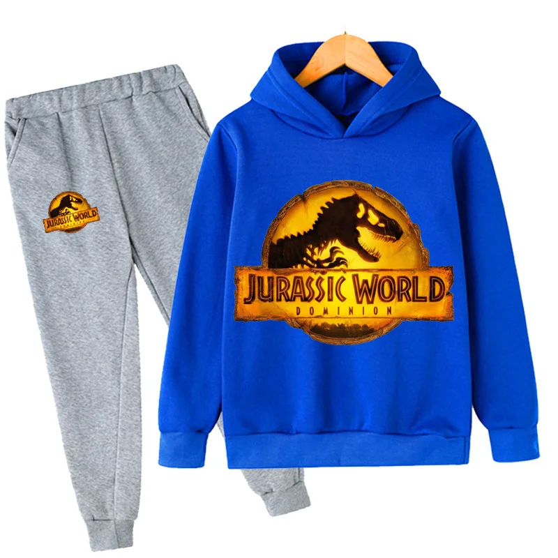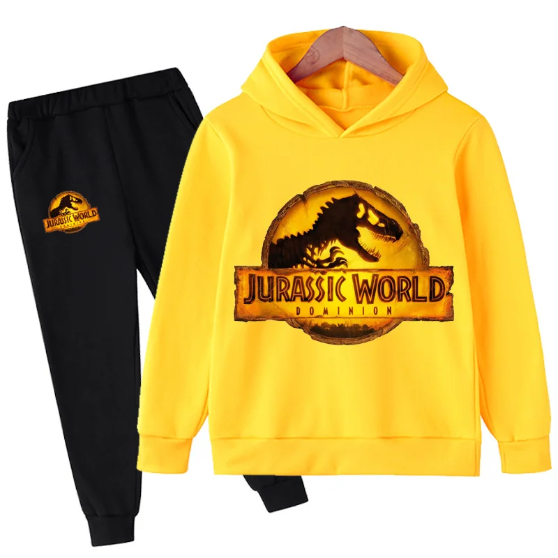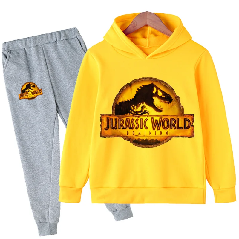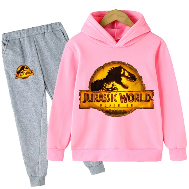 Children Dinosaur Hoodies Pants Set Boys Girls Jurassic World Dominion Sweatshirts Hooded Kids Fashion Pullovers Clothes Suit