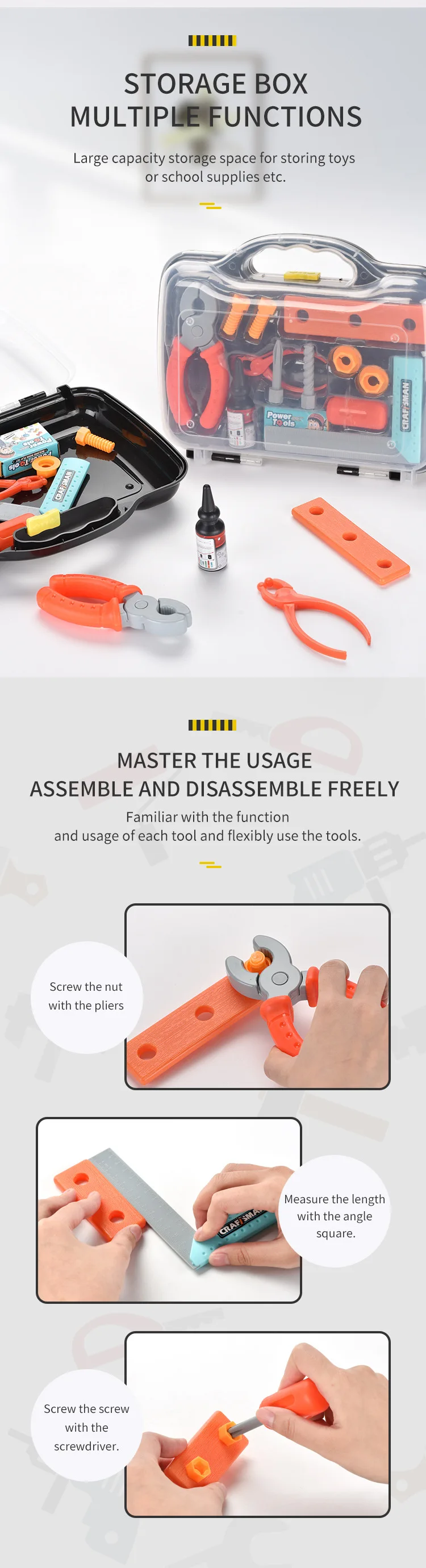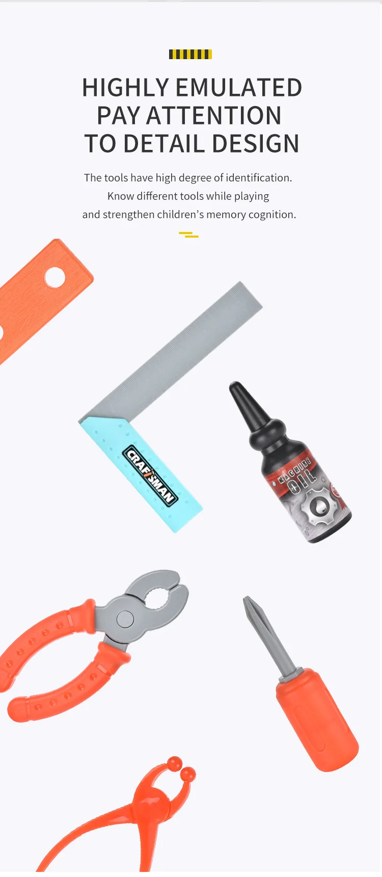 1.Everything is fully functional and realistic,Kids love pretend their father working and fixing at home,which is much helpful for intellectual development,hand-eye coordination, counting, sorting, color recognition, and problem-solving skills.
