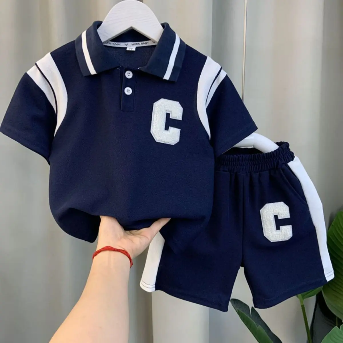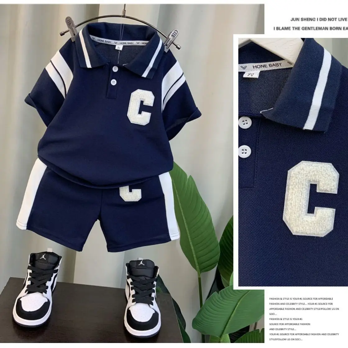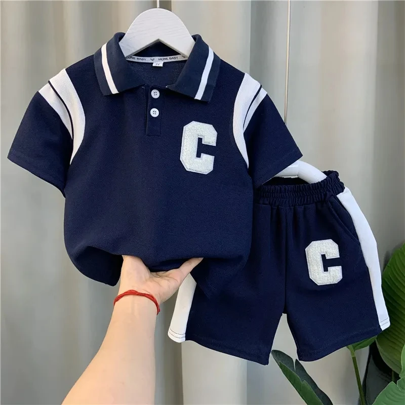 Children’s Clothes Suit Boys Summer Polo Shirt Shorts Set 2023 New Baby Boys Short Sleeved Shirt Pants Two-piece Set
