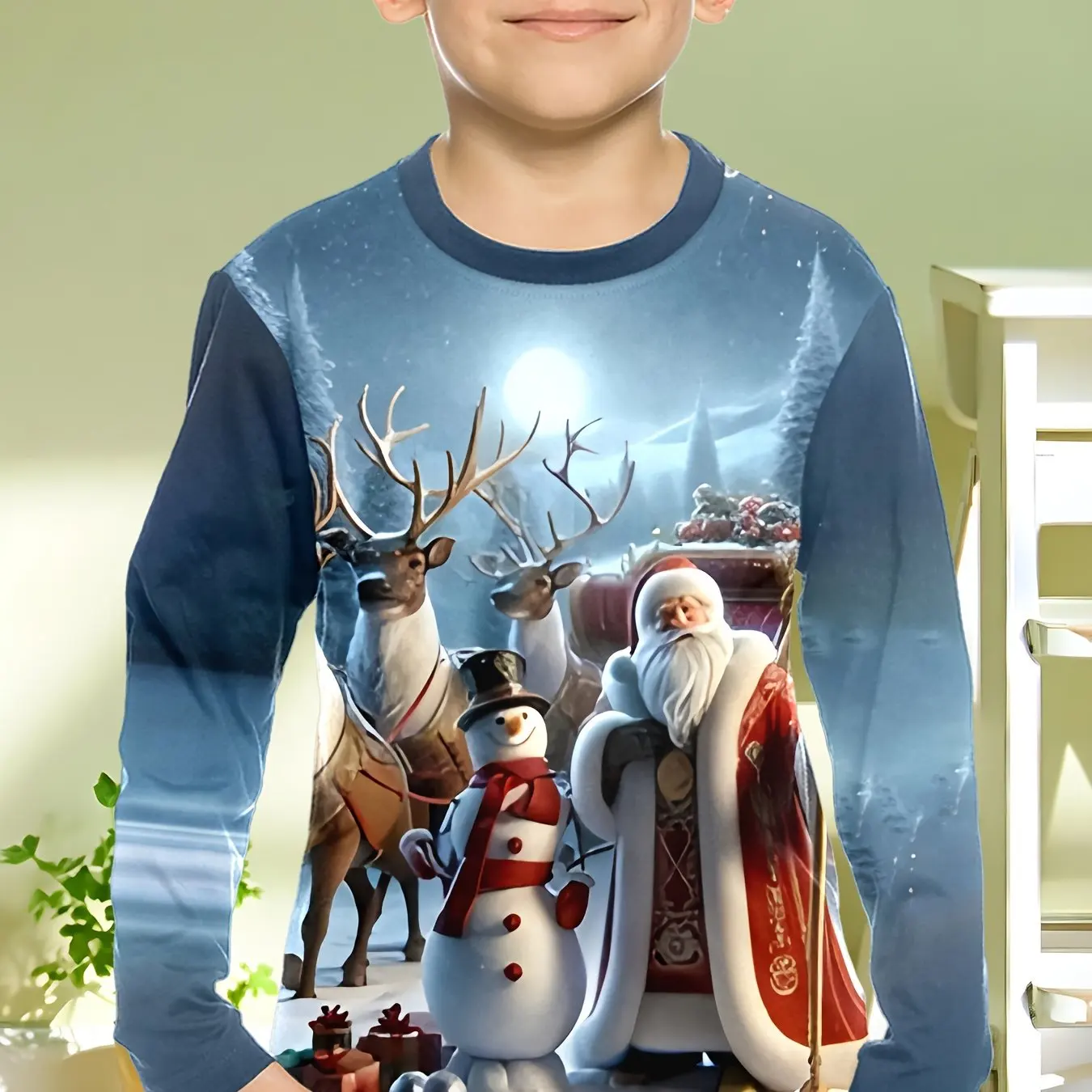 Children’s Clothing Boys Tshirt Long Sleeve Santa Claus Print Children Spring Fall Clothes Stylish Christmas Party Girl Clothes