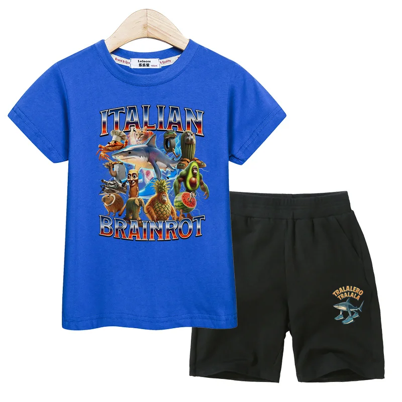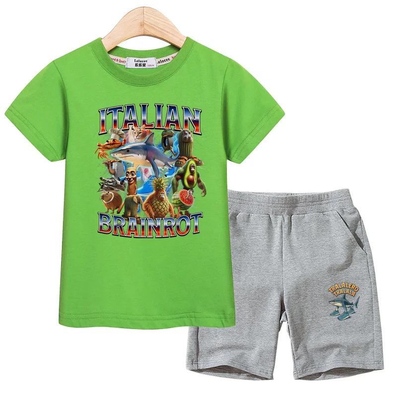 Childrens Italian Brainrot Clothing Summer T-shirt Shorts 2-piece Set for Boys Cartoon Outfits 3-14T Costumes