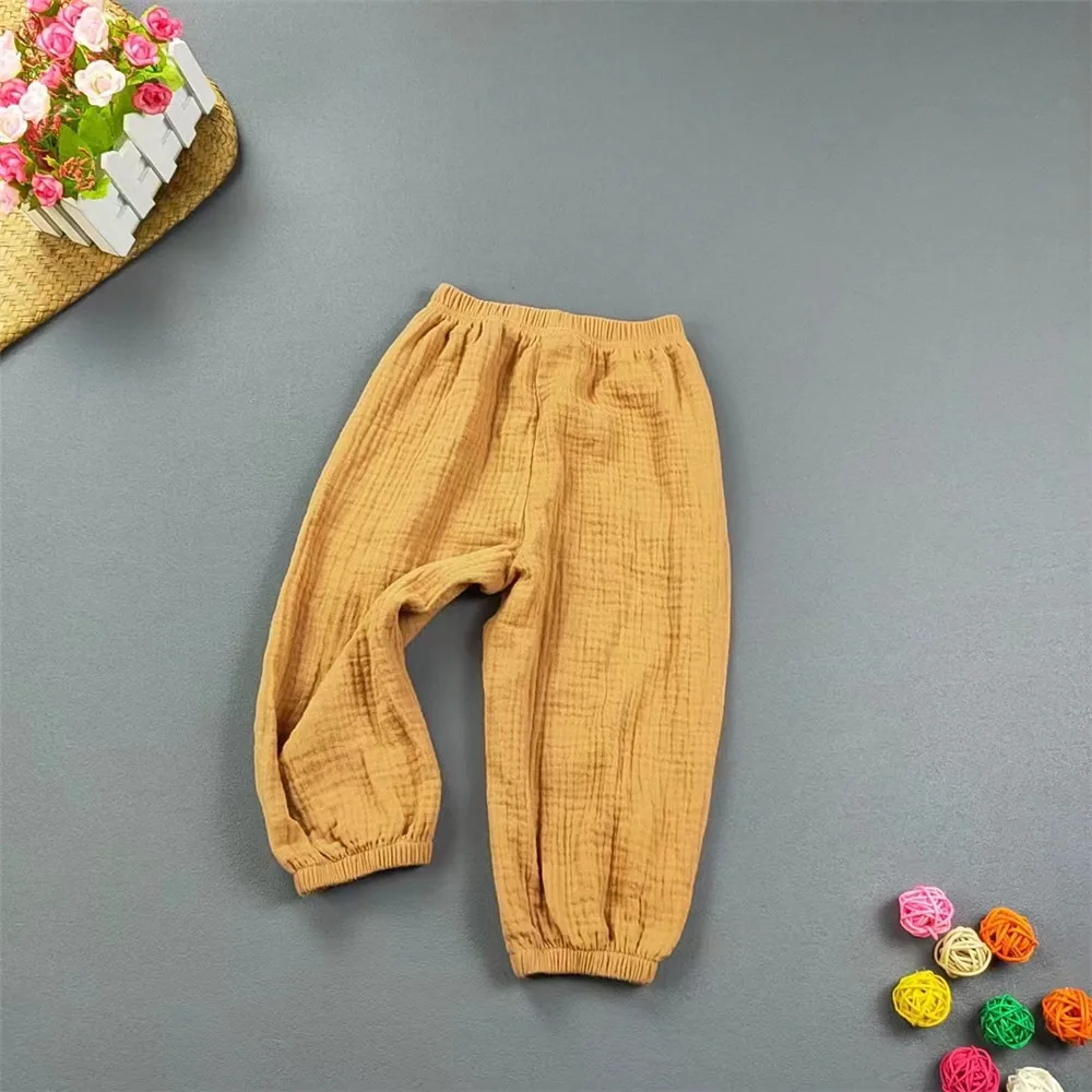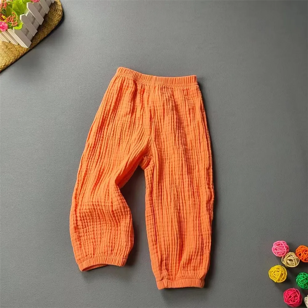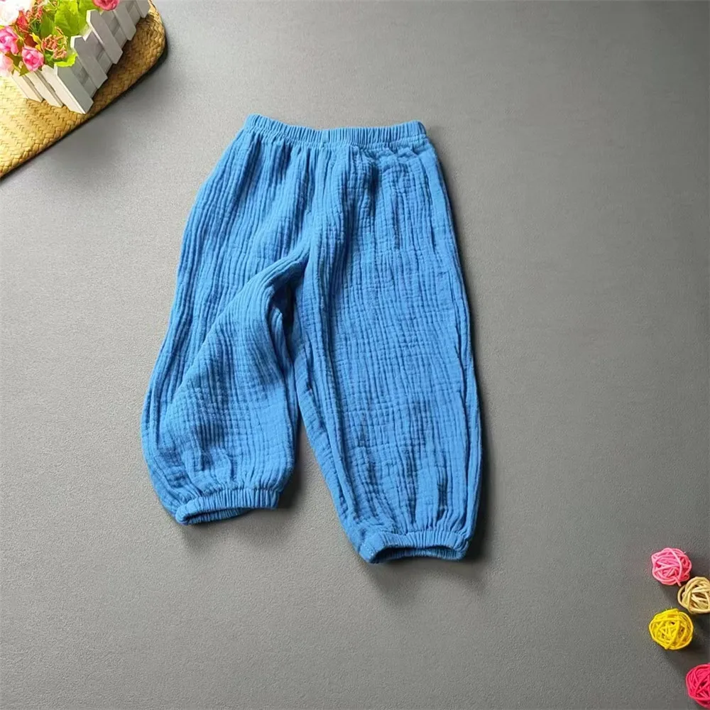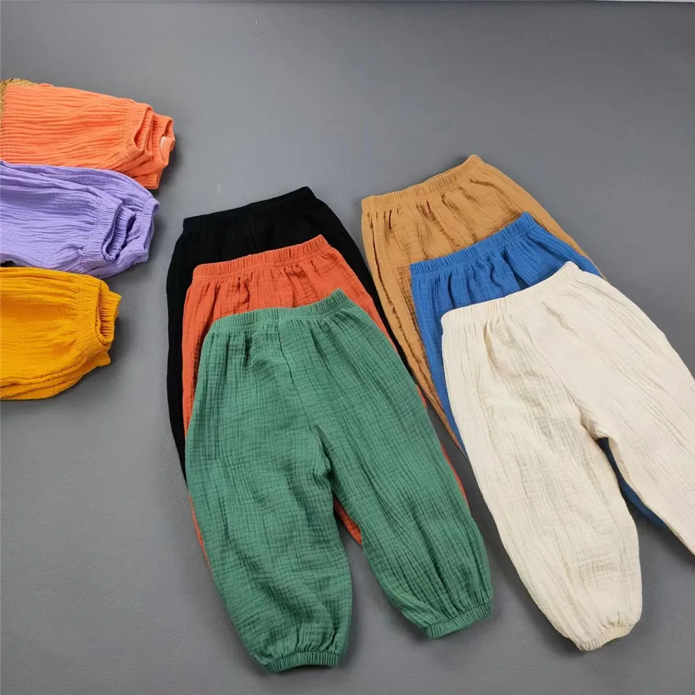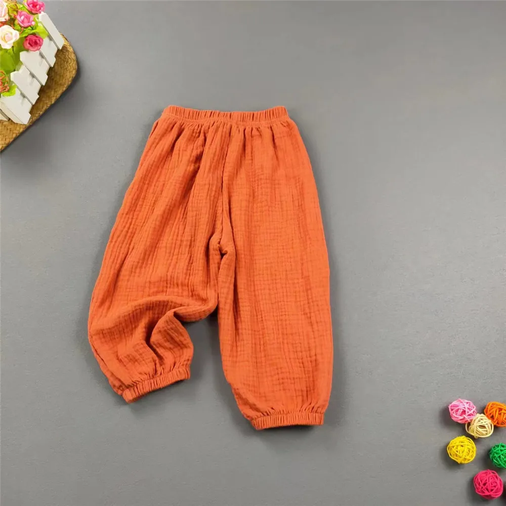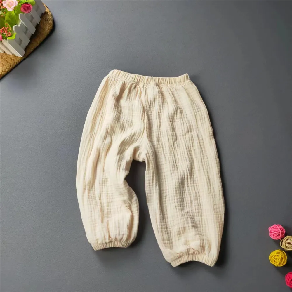 Children’s Pants 2023 New Boys’ Cotton Pants Girls’ Summer Harlan Pants Baby Cotton Gauze Sweat-absorbing Pants Casual Clothing